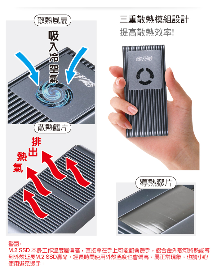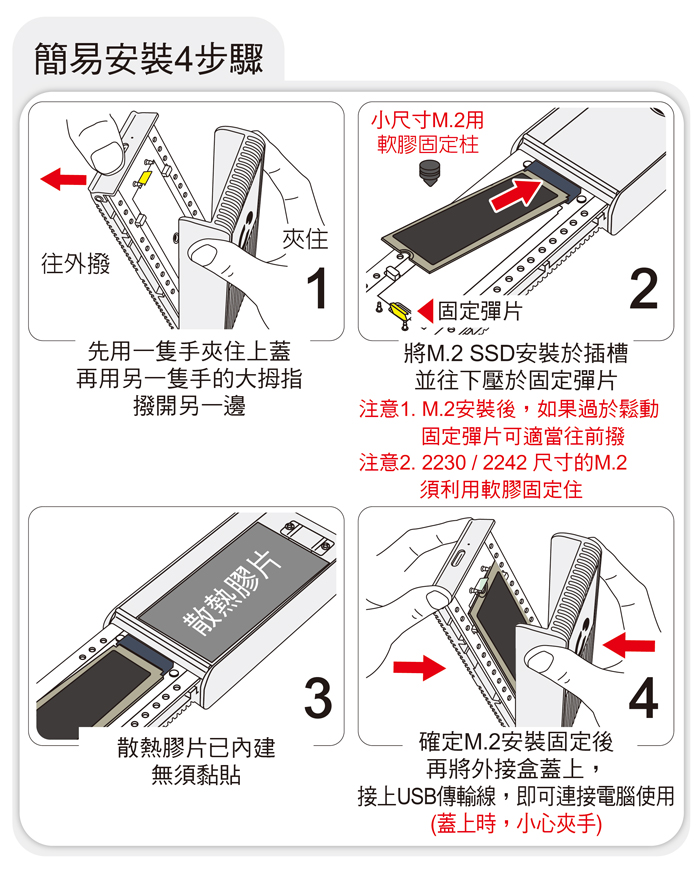 ● 掀蓋式鋁合金外殼,安裝免螺絲,隨插即用