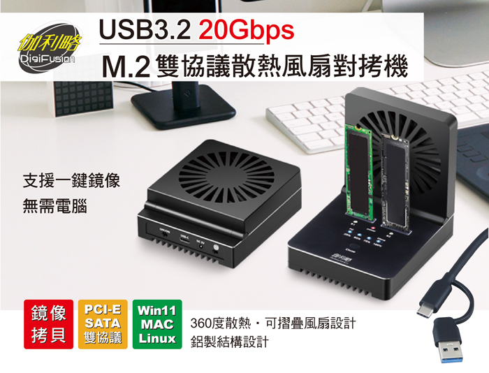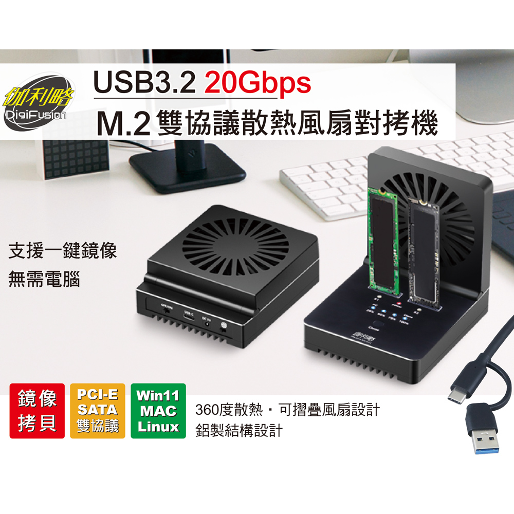 伽利略 USB3.2 20Gbps M.2雙協議 散熱風扇 對拷機