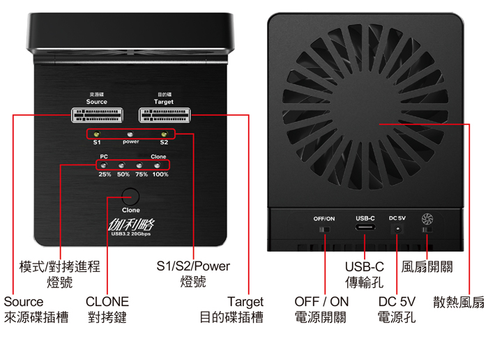 ● 支援1對1鏡像拷貝,完美複製。可拷貝開機系統碟/特殊格式硬碟檔