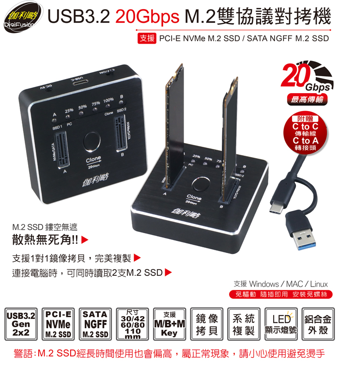 伽利略 USB3.2 20Gbps M.2雙協議 對拷機
