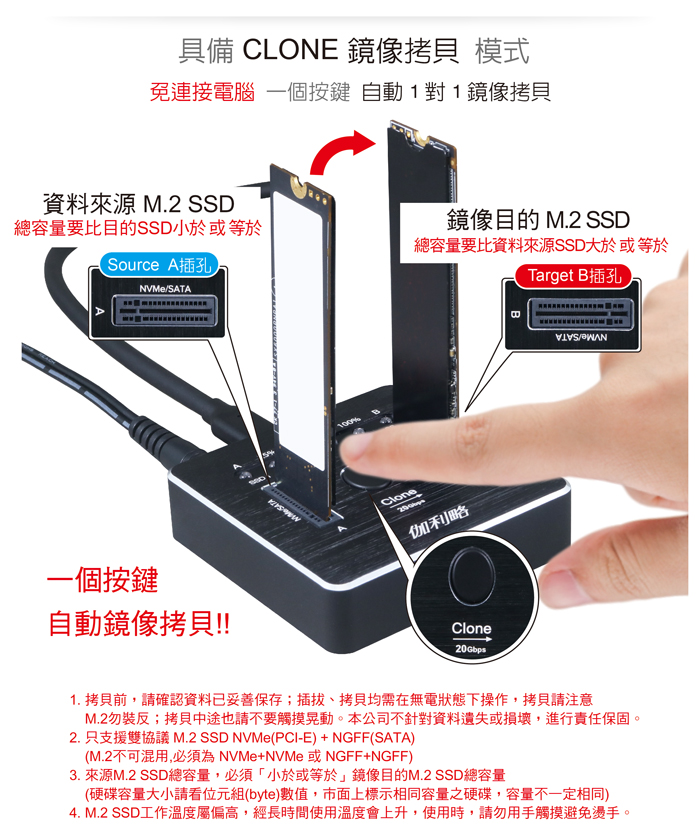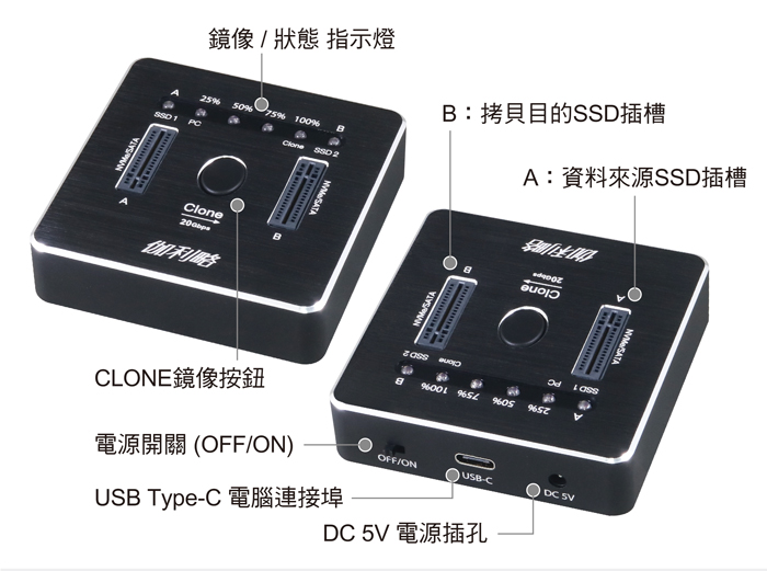 ● 支援1對1鏡像拷貝,完美複製。可拷貝開機系統碟/特殊格式硬碟檔