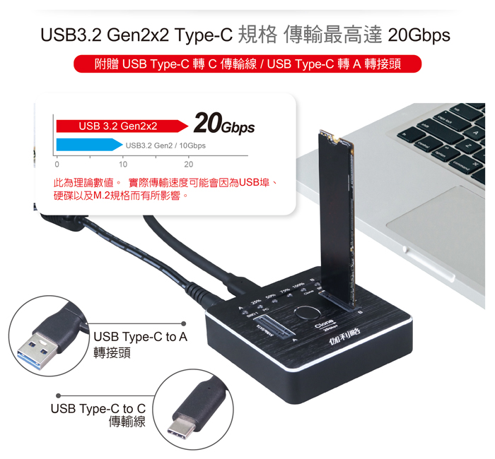 ● USB3.2 Gen2x2 規格,傳輸速度可達20Gbps(電腦必須支援)