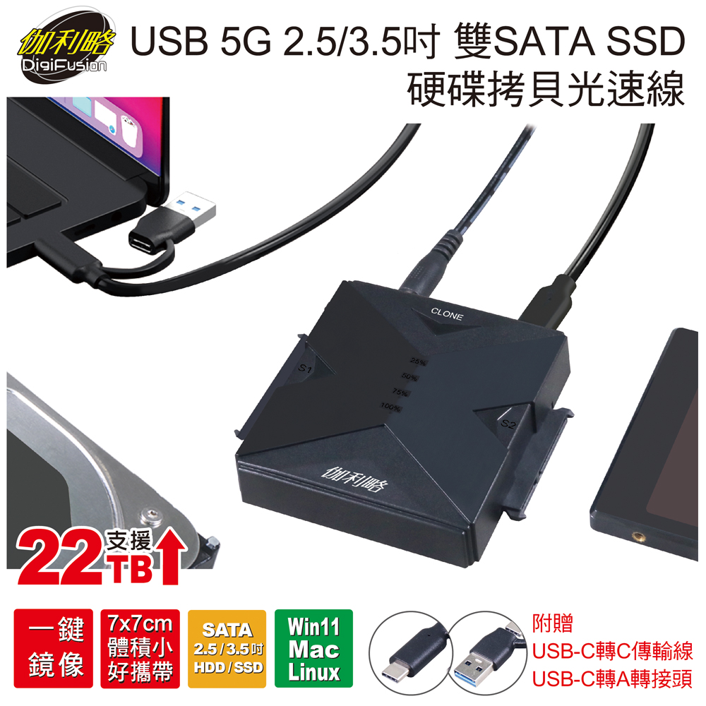 伽利略 USB 5G 2.5/3.5 雙SATA SSD 硬碟拷貝 光速線