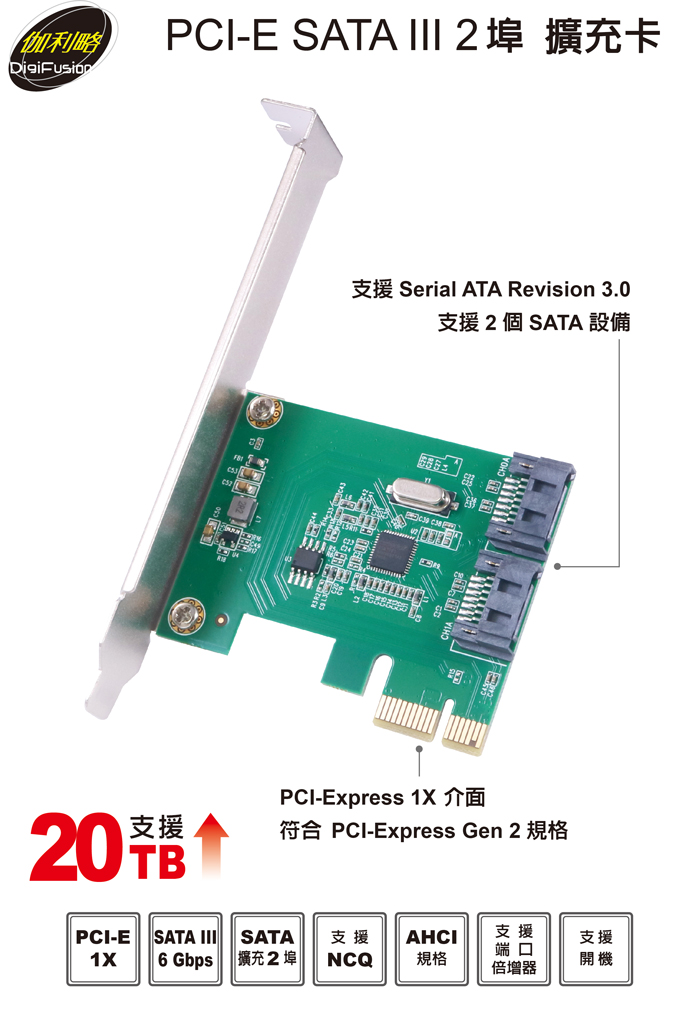 伽利略 PCI-E SATA III 2 埠 擴充卡