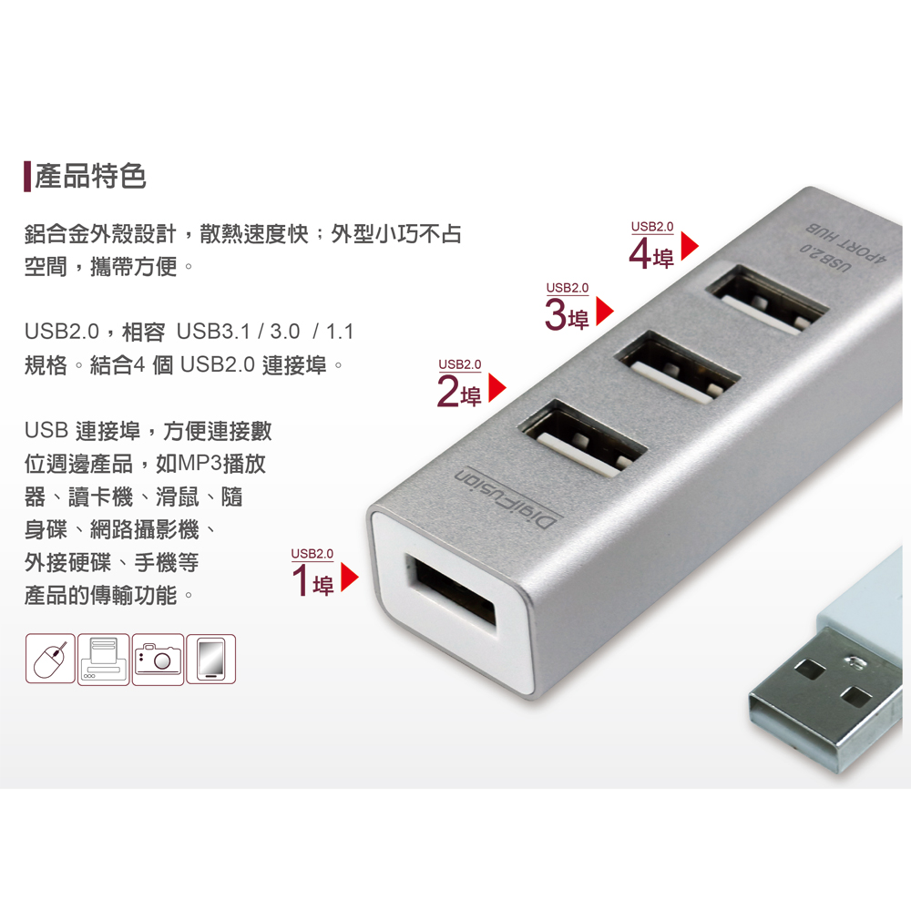 伽利略 USB2.0 4埠 HUB 鋁合金