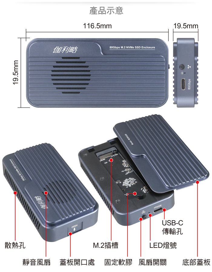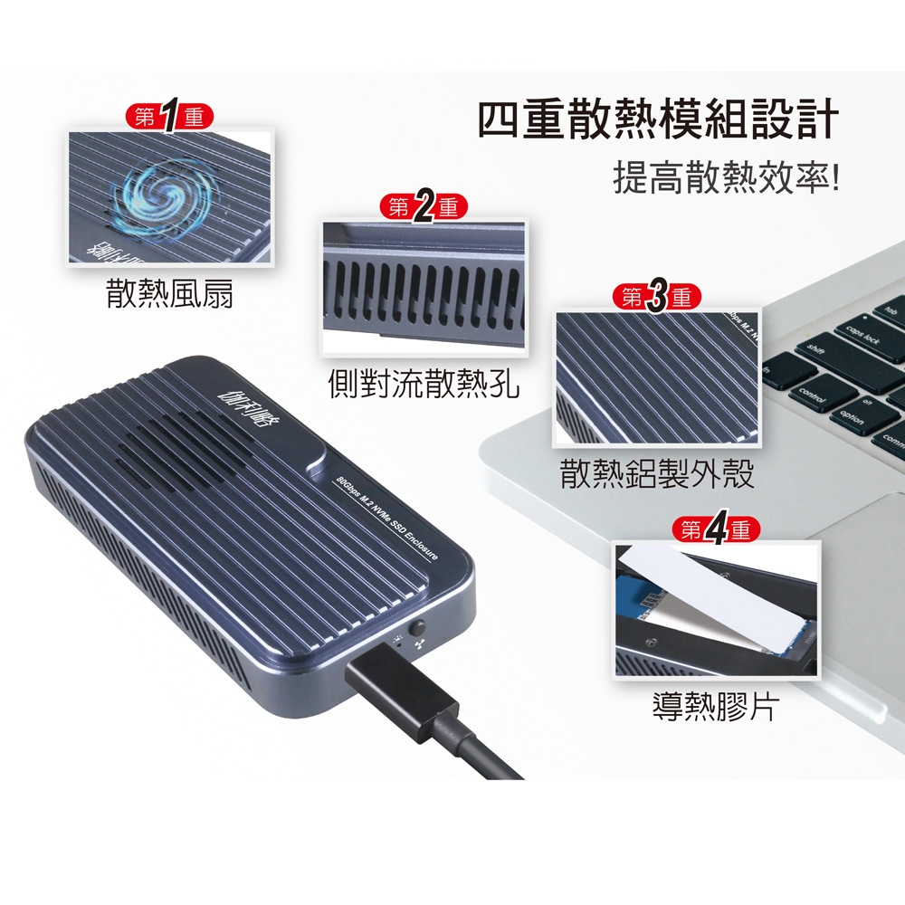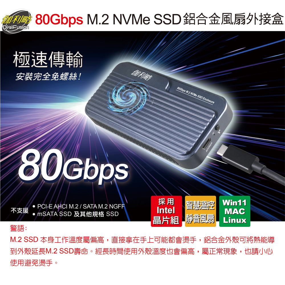 伽利略 80Gbps M.2 NVMe SSD 鋁合金風扇 外接盒