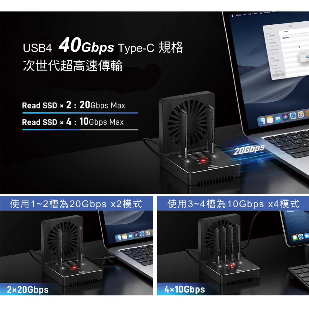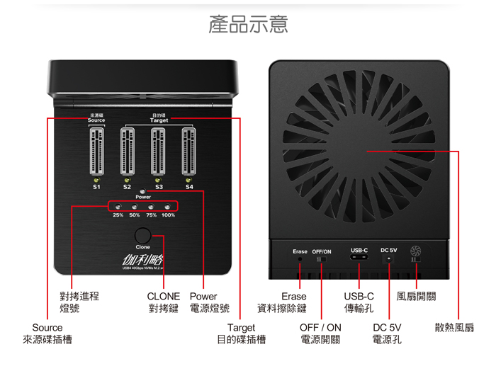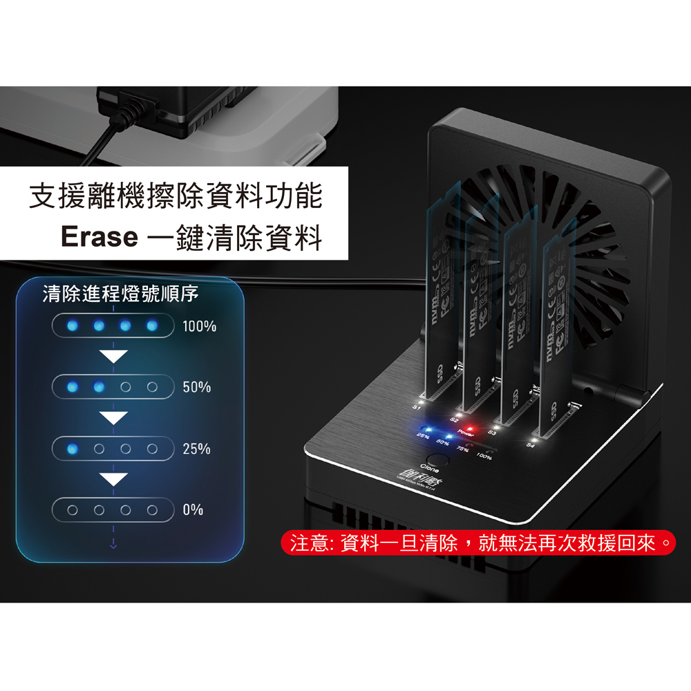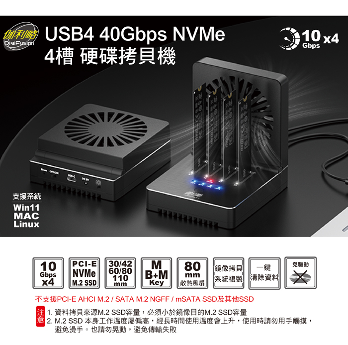 伽利略 USB4 40Gbps NVMe 4槽硬碟拷貝機