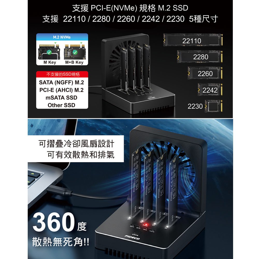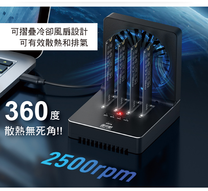 ● 連接電腦可同時讀取4支PCI-E(NVMe) M.2