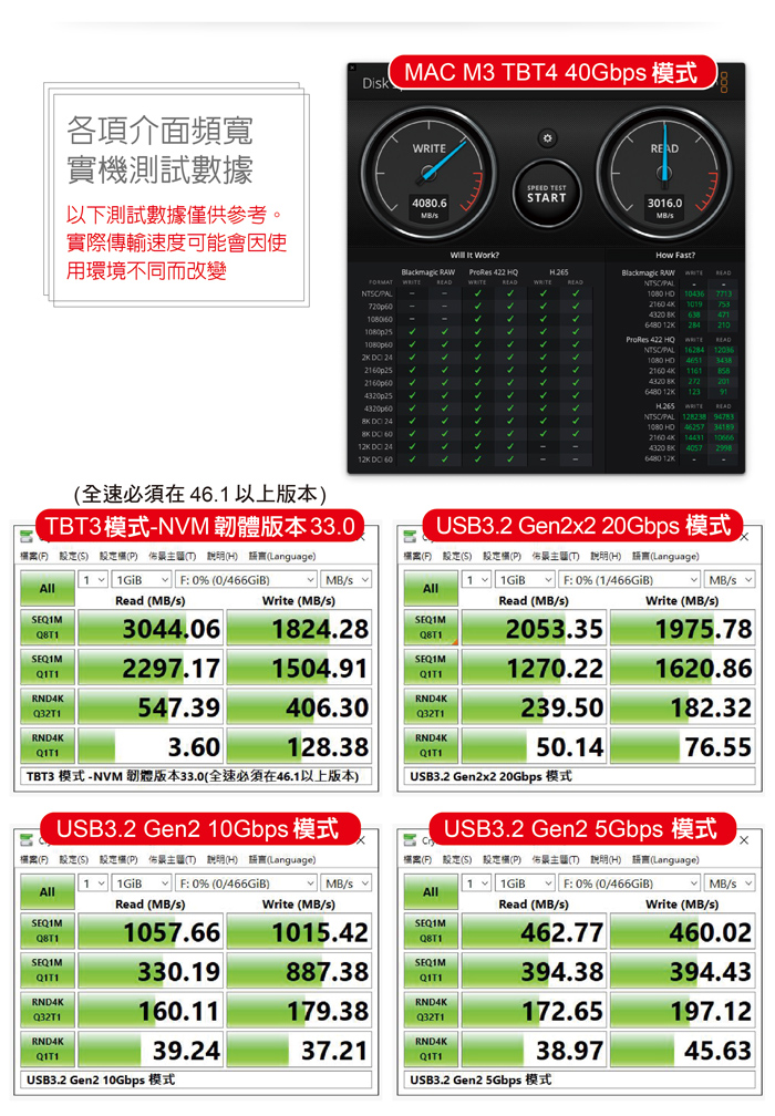● 全面相容Thunderbolt 4/3,USB3.2(20/10/5)Gbps