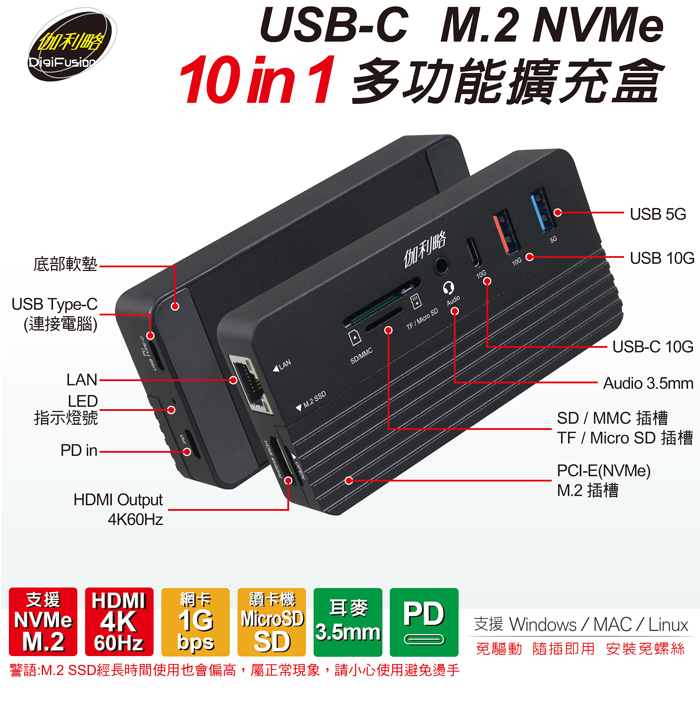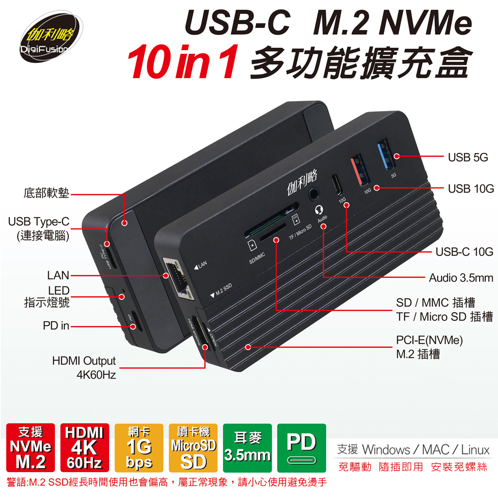 伽利略 USB-C 10in1 M.2 NVMe 多功能擴充盒