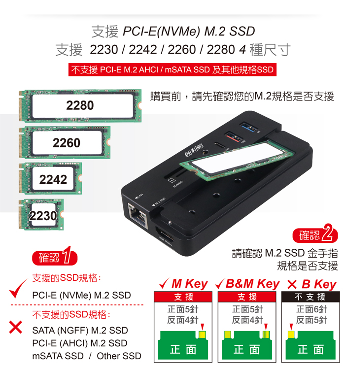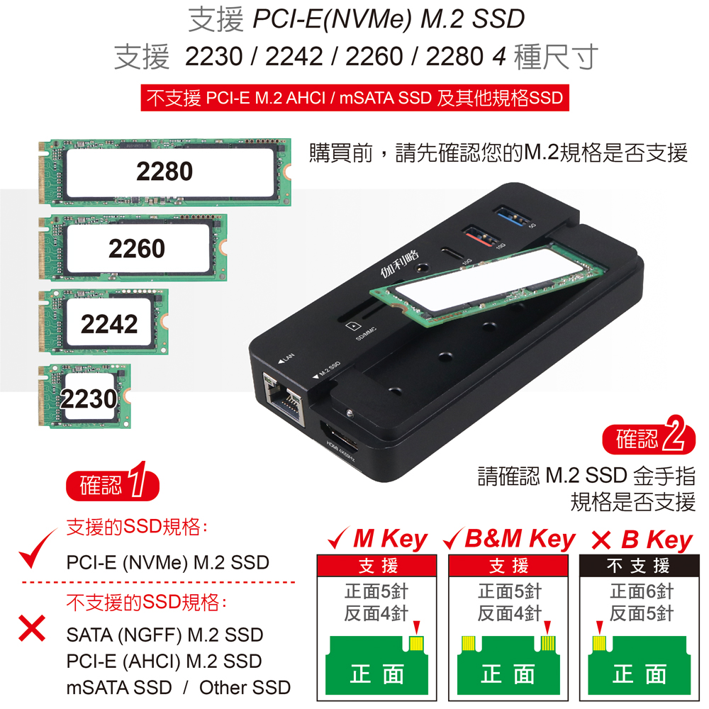 ● 可內接PCI-E (NVMe) M.2 (支援M key / B+M Key)