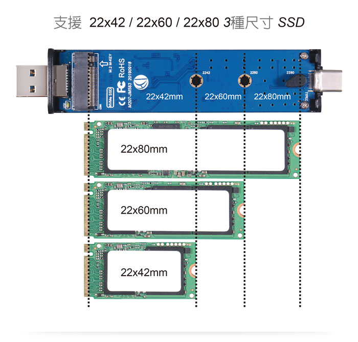 ● 支援3種尺寸: 22x42/22x60/22x80 mm
