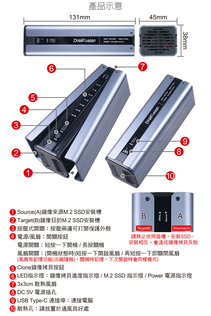 ● 內建3m散熱風扇,搭配鋁殼可有效降溫