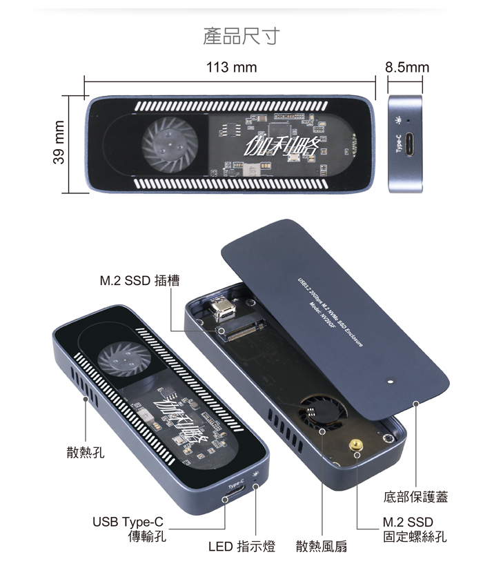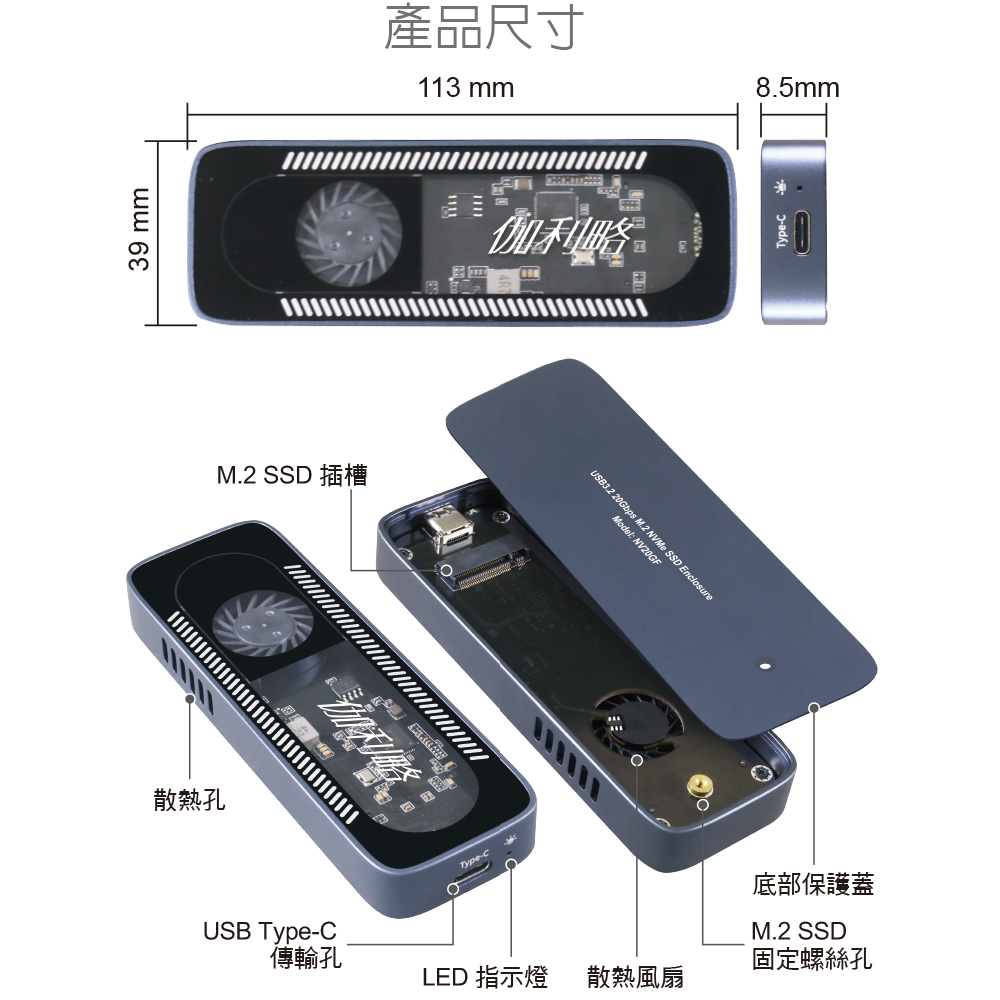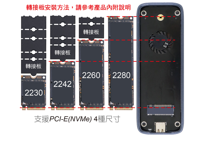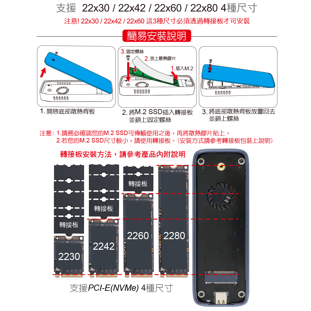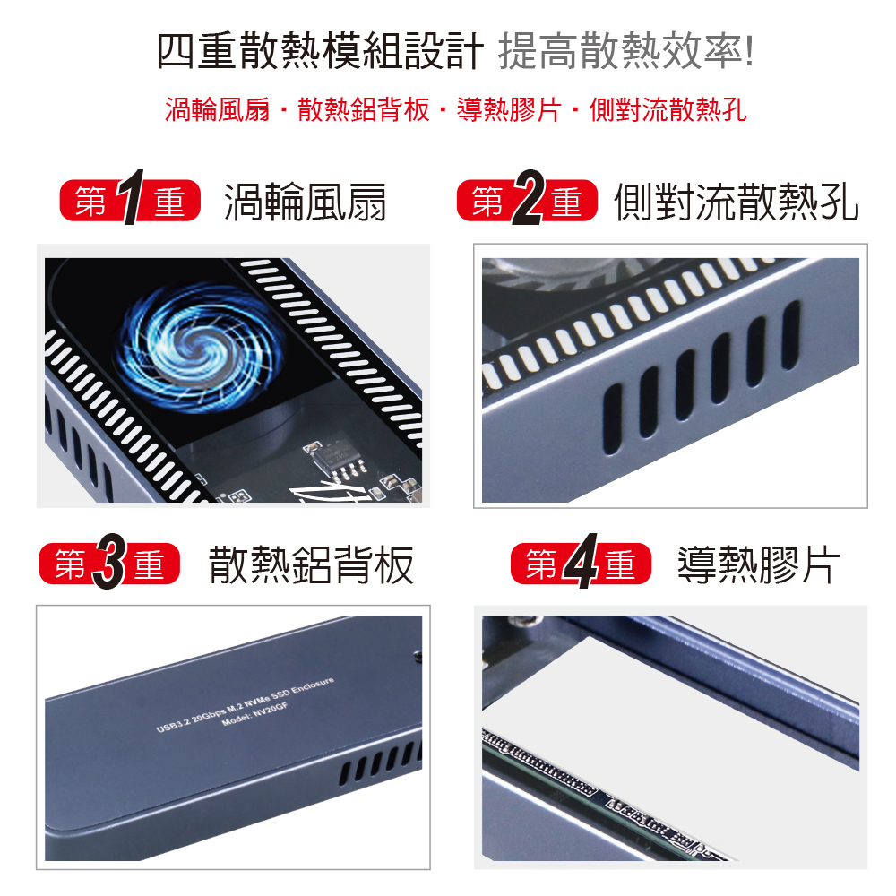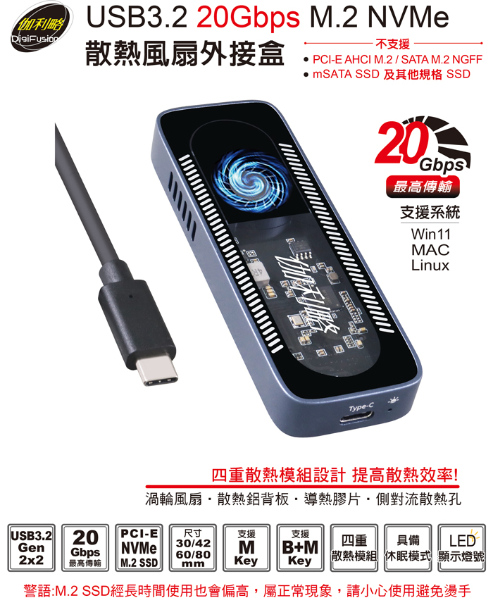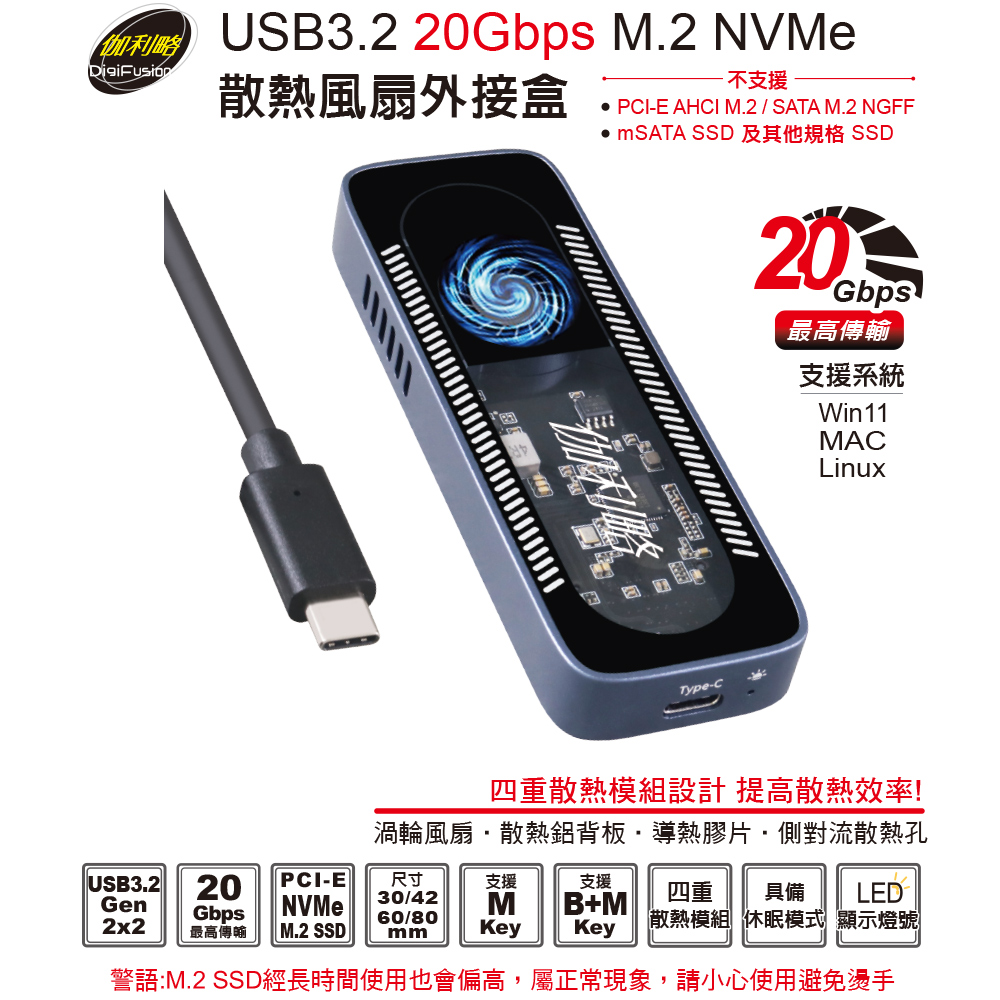 伽利略 USB3.2 20G M.2 NVMe 散熱風扇外接盒