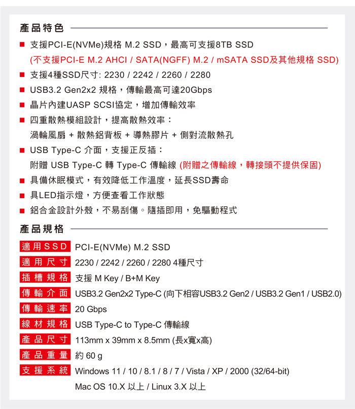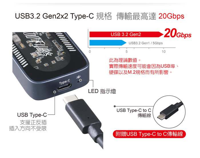 ● USB3.2 Gen2x2 20Gbps Type-C規格