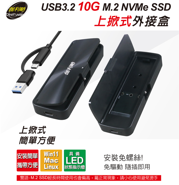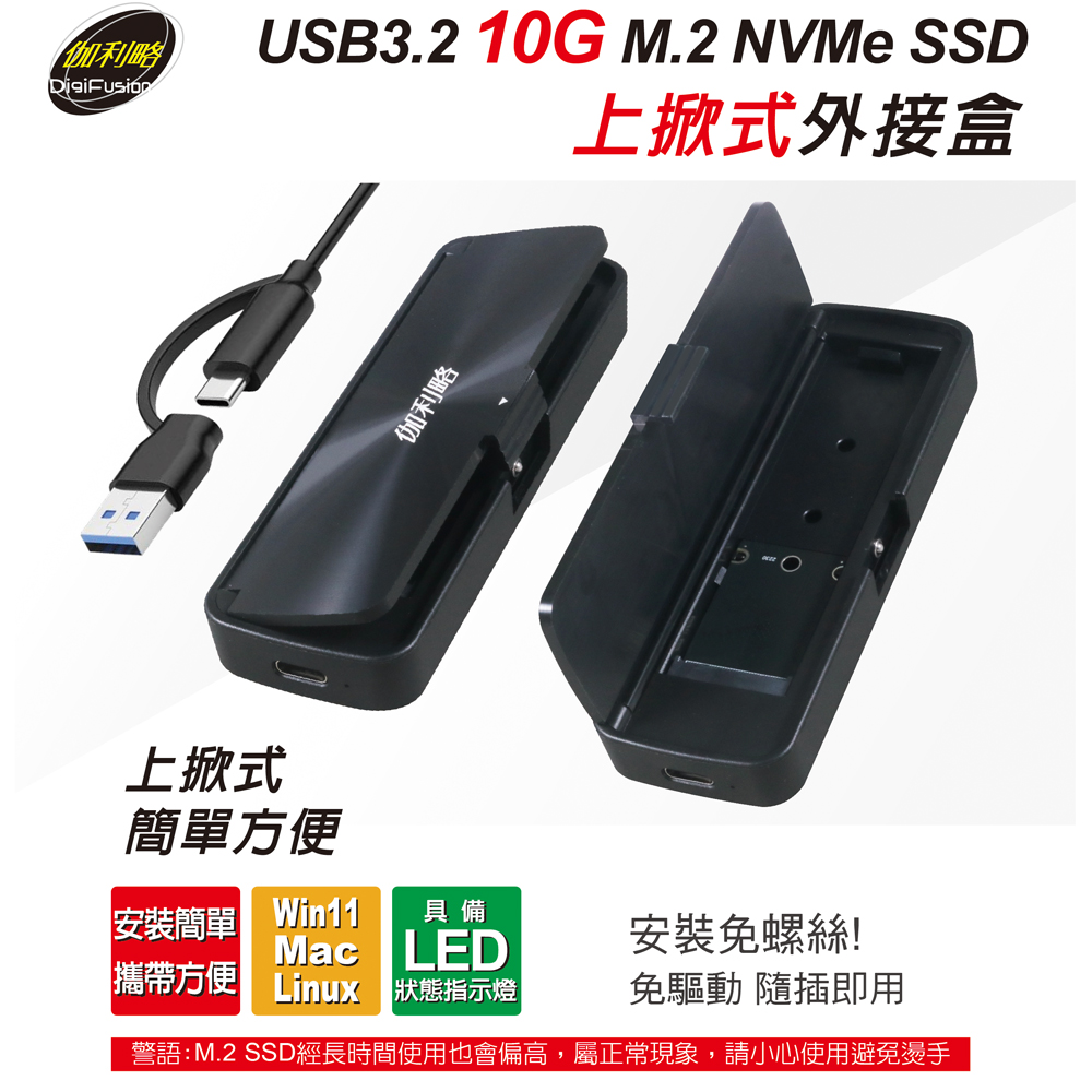 伽利略 USB3.2 10G M.2 NVMe SSD 上掀式外接盒