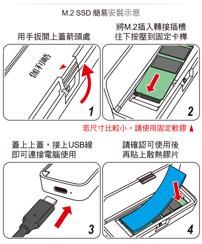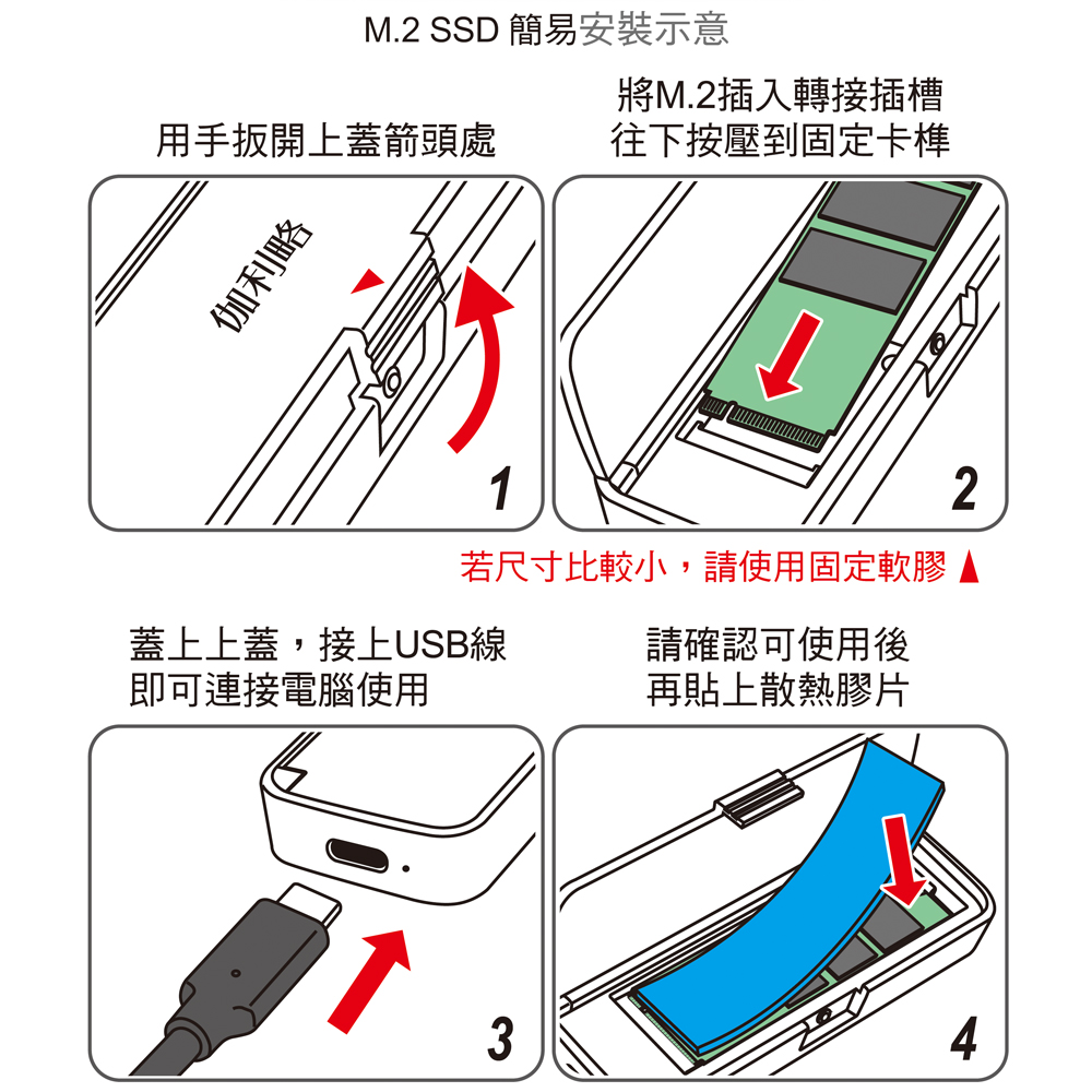 ● M.2安裝免螺絲。隨插即用免驅動