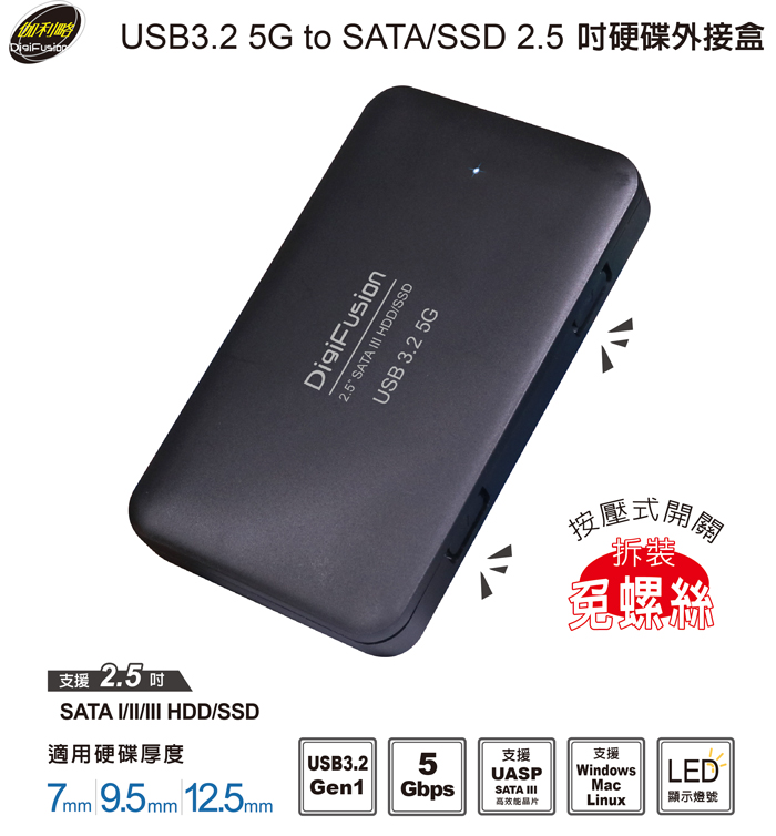 伽利略 USB3.2 5G to SATA/SSD 2.5" 硬碟外接盒