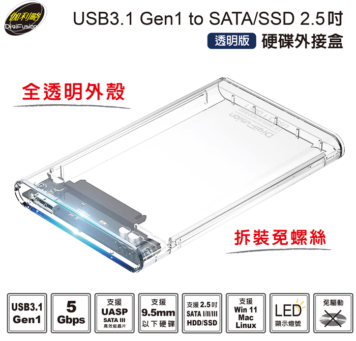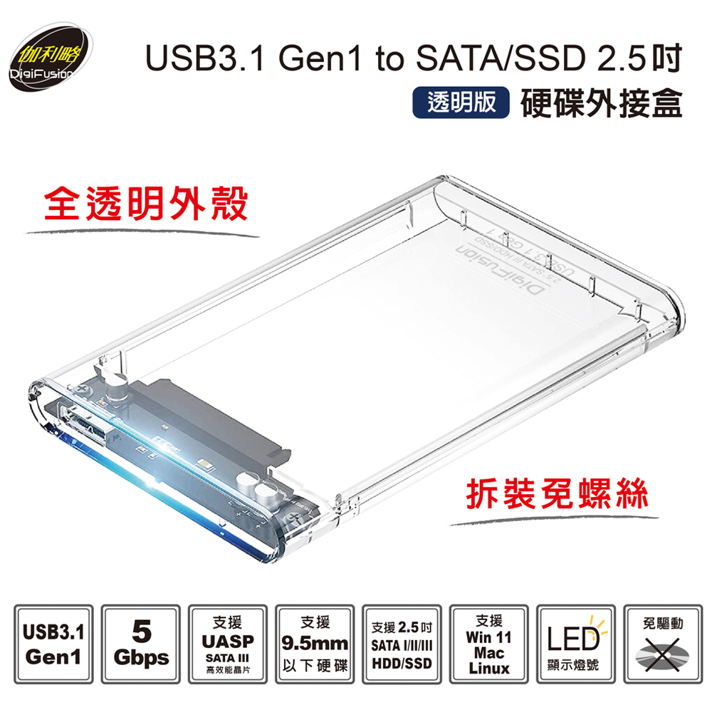 伽利略 USB3.1 Gen1 SATA/SSD 2.5" 透明版硬碟外接盒