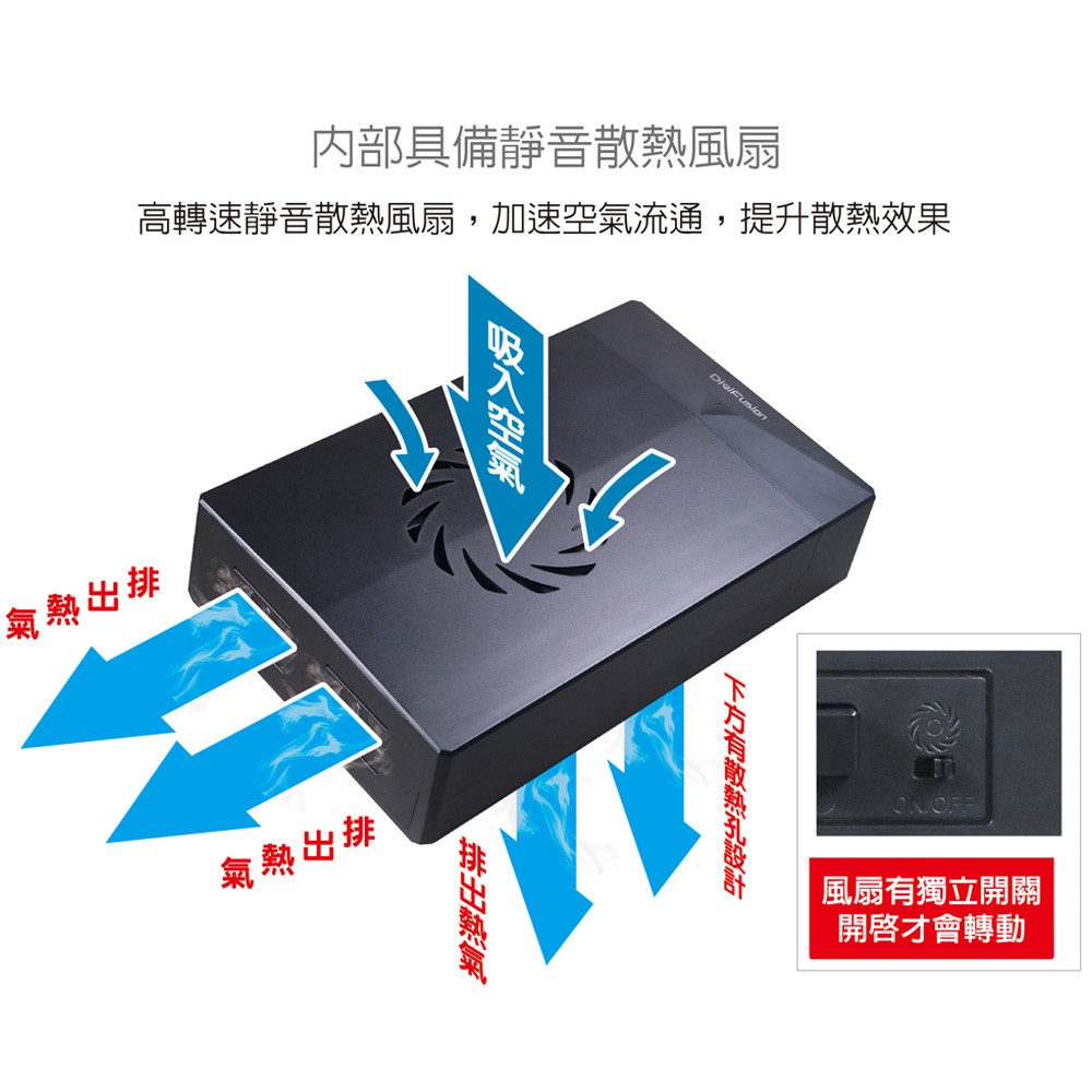 ● 獨立電源開關,具備LED指示燈,可顯示運作狀況