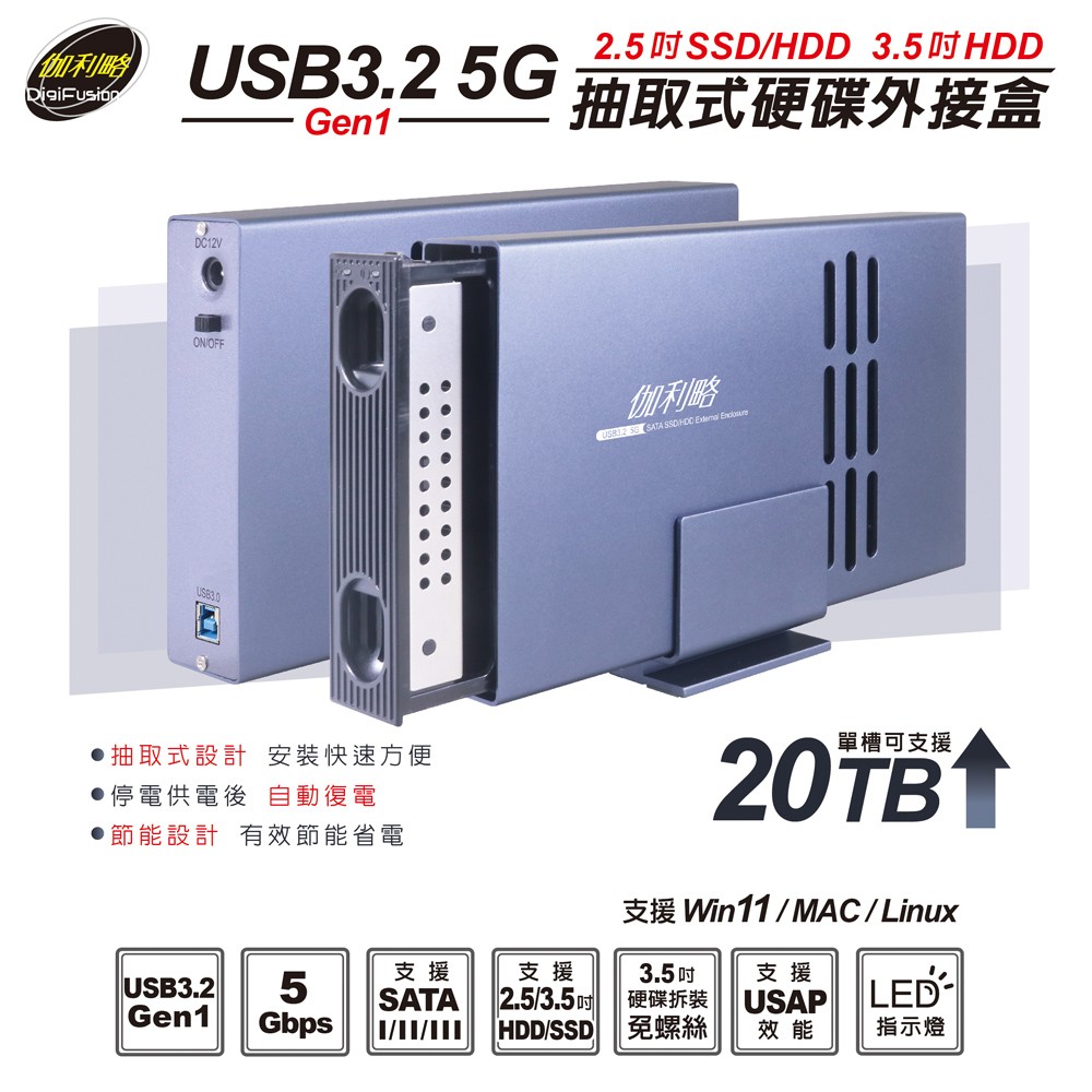 伽利略 USB3.2 5G 2.5/3.5" SSD & SATA 抽取式硬碟外接盒