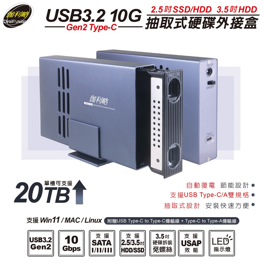 伽利略 USB3.2 10G 2.5/3.5" SSD & SATA 抽取式硬碟外接盒