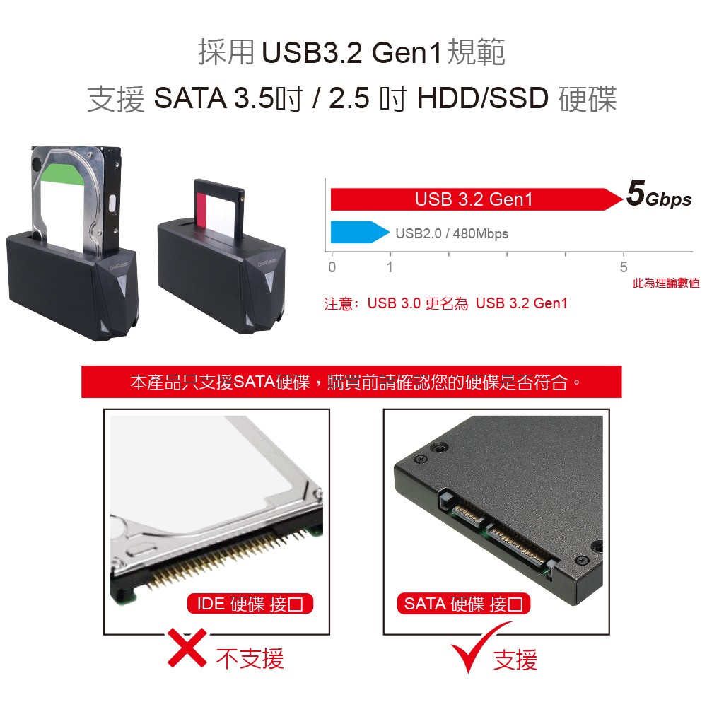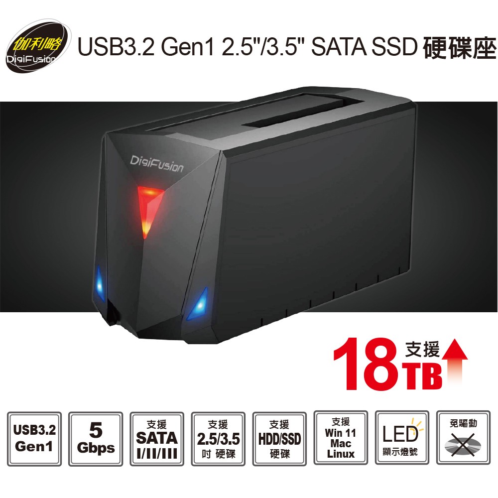 伽利略 USB3.2 Gen1 2.5/3.5" SATA SSD硬碟座