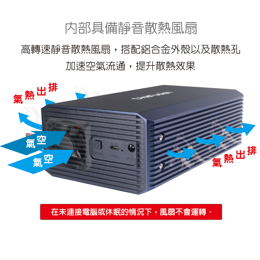 ● 具有5x5公分靜音散熱風扇。USB支援熱插拔,隨插即用