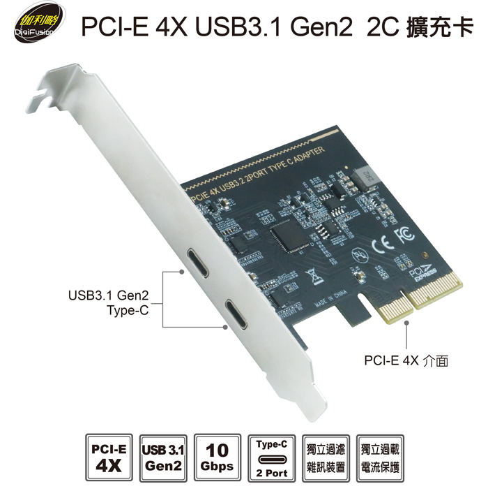 伽利略 PCI-E 4X USB3.1 Gen2 2C 擴充卡