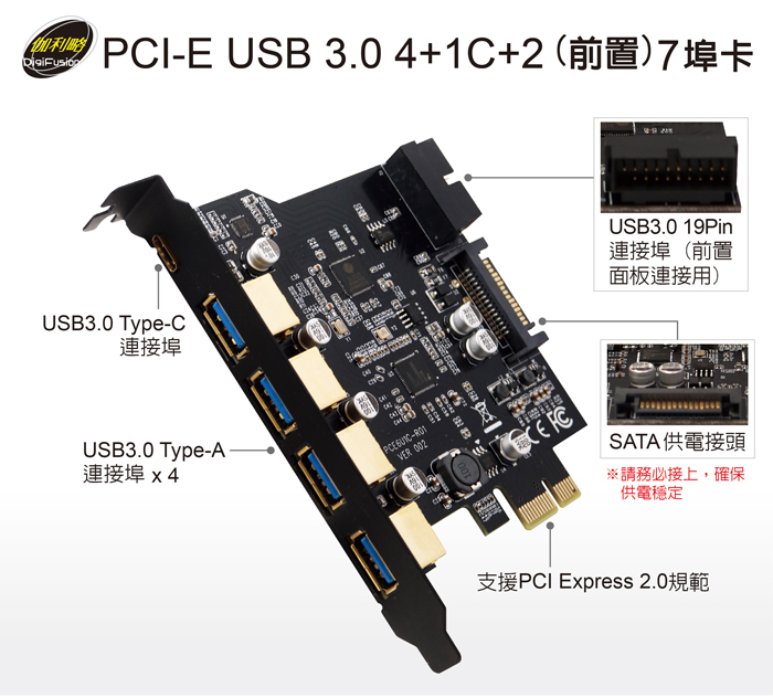 伽利略 PCI-E USB3.0 4+1C+2(前置) 7埠卡