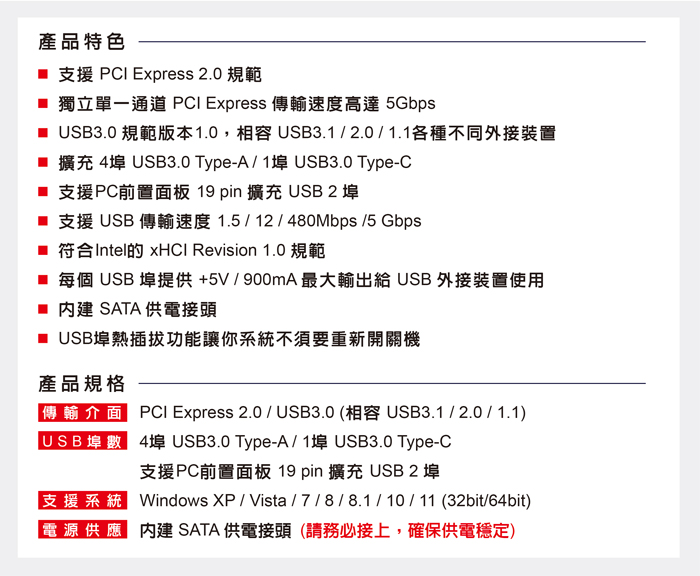 ● 支援 PCI-E 2.0規範。傳輸速度高達 5Gbps