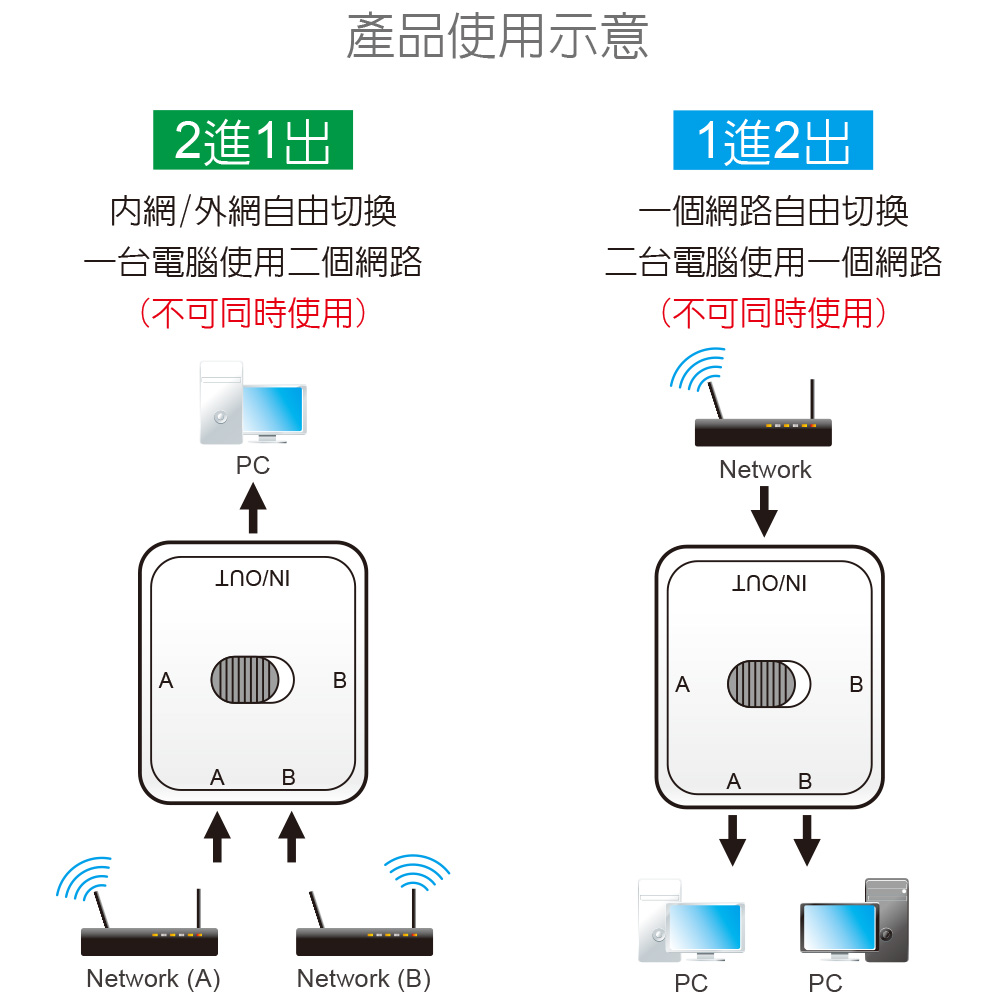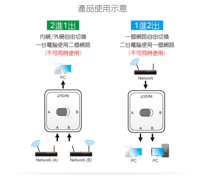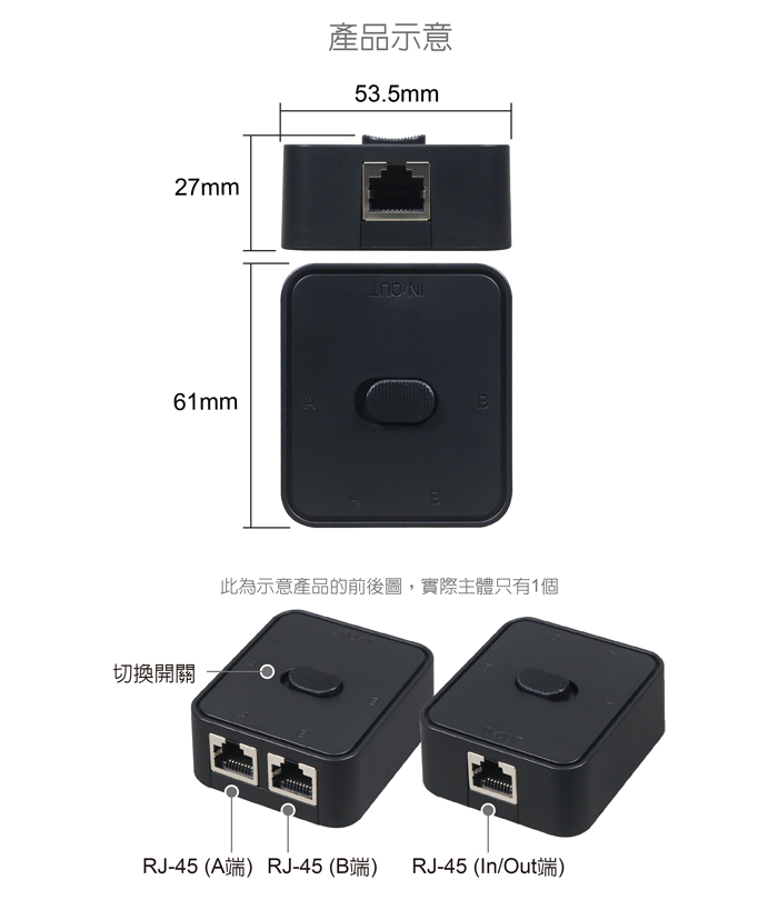 ● 採用機械開關,一鍵切換,免插拔網路線