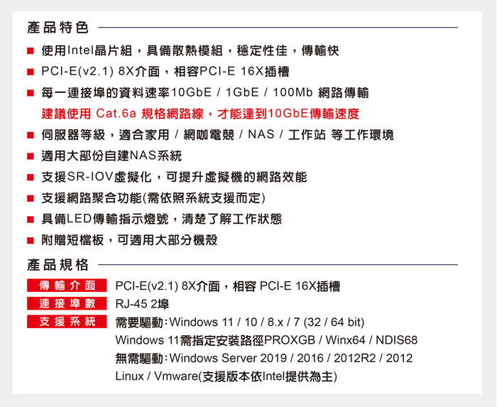 ● 支援SR-IOV虛擬化,可提升虛擬機的網路效能
