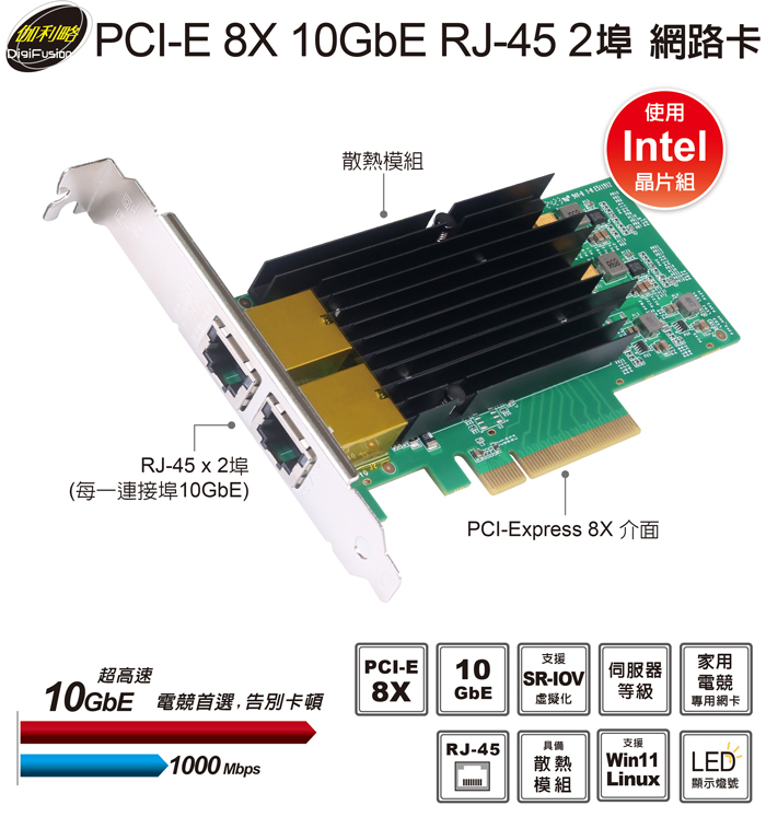 伽利略 PCI-E 8X 10GbE RJ-45 2埠 網路卡