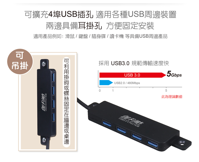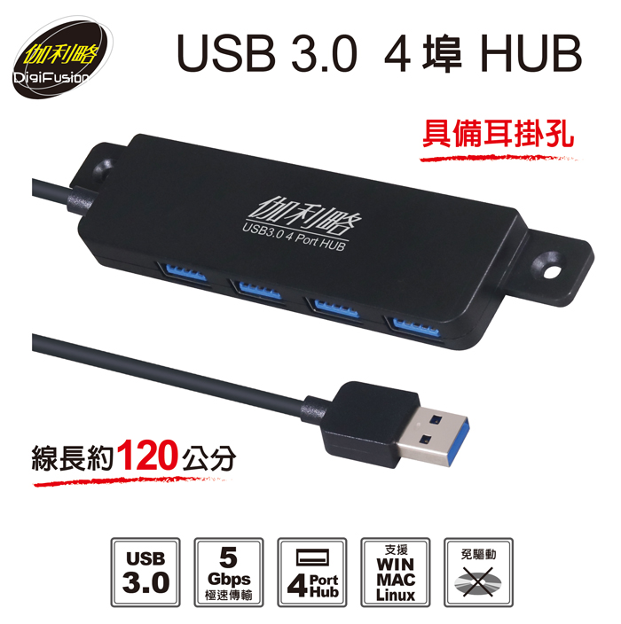 伽利略 USB 3.0 4埠 HUB (線長約120公分)