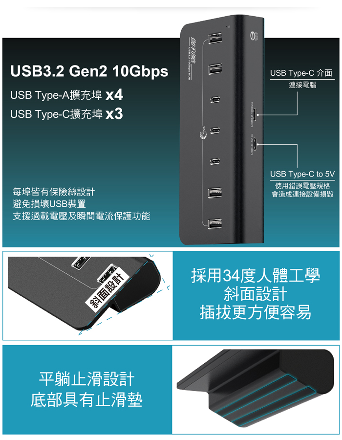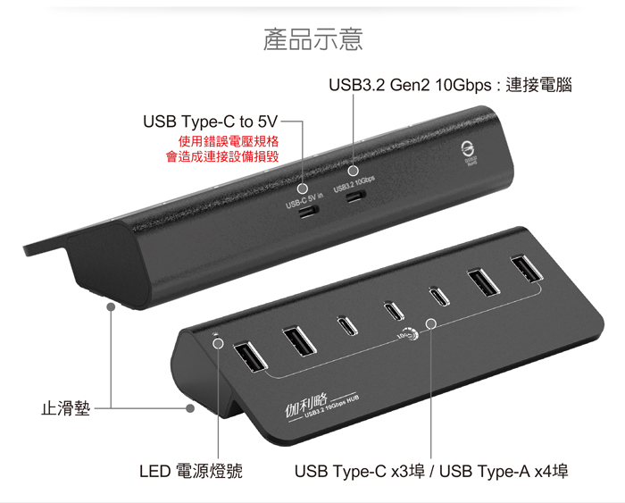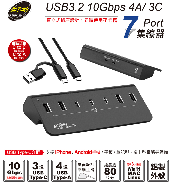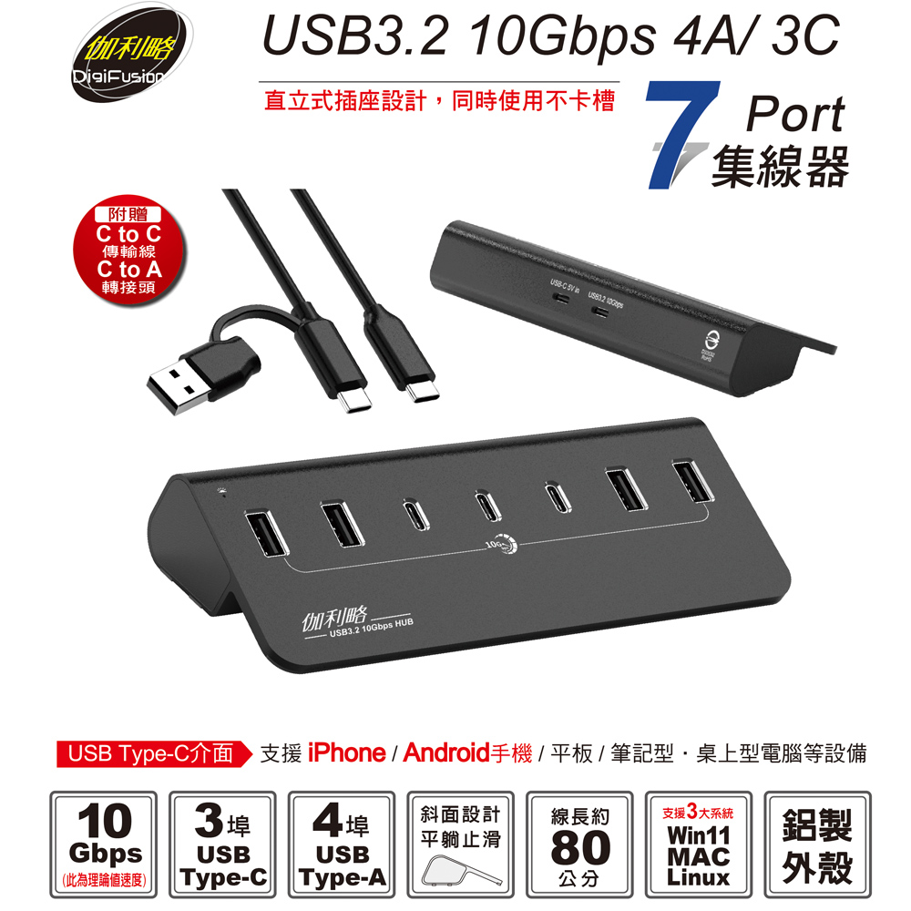 伽利略 USB3.2 10Gbps 4A/3C 7Port 集線器