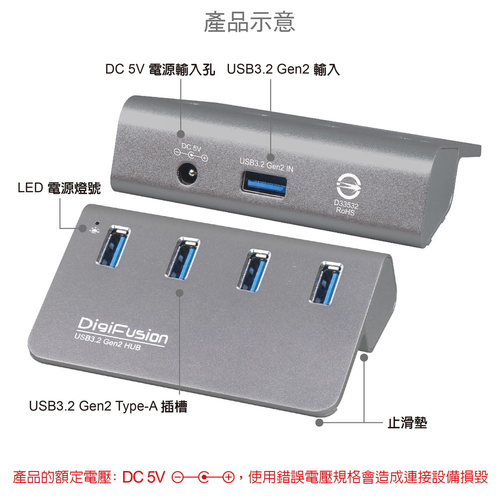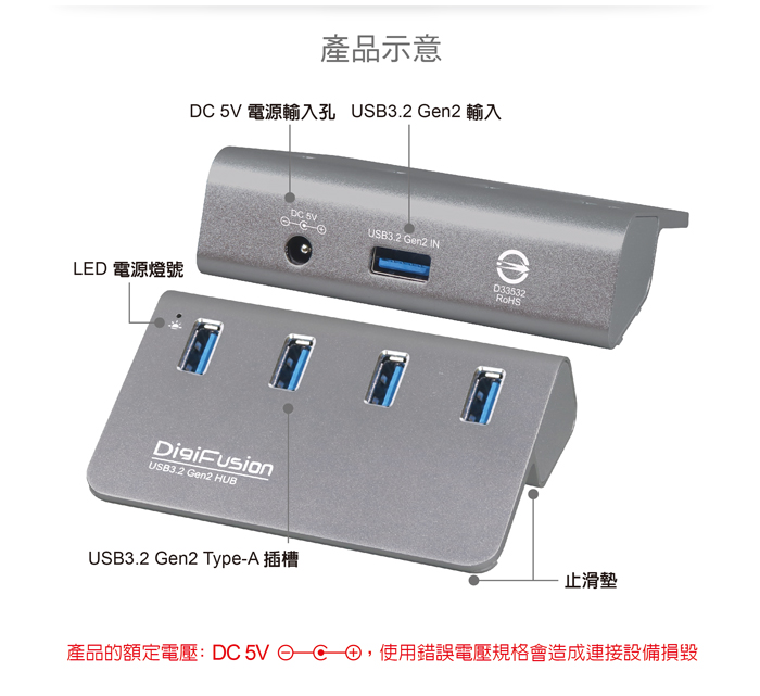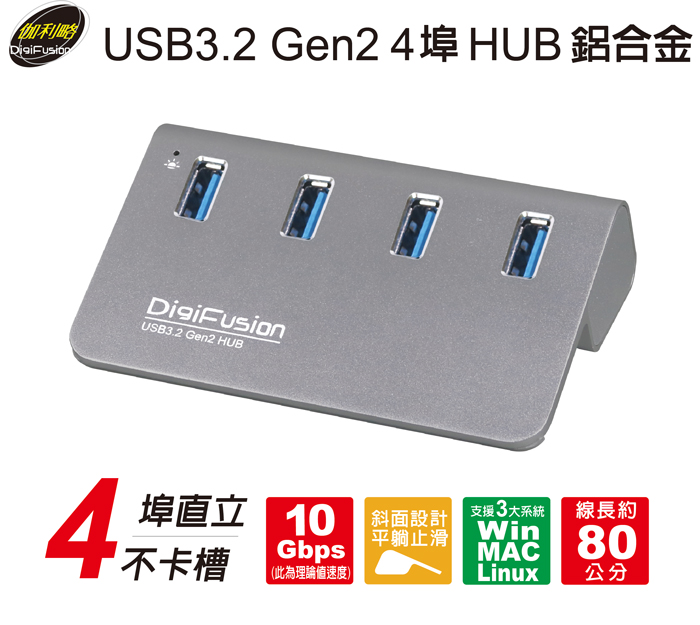 伽利略 USB3.2 Gen2 4埠 Hub 鋁合金