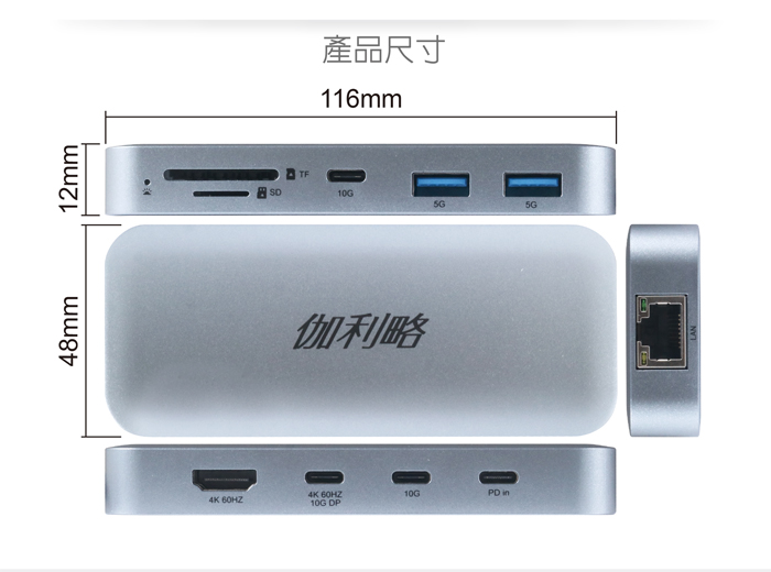 伽利略 USB-C 10in1 4K60 HDMI+網卡+讀卡機 多功能集線器