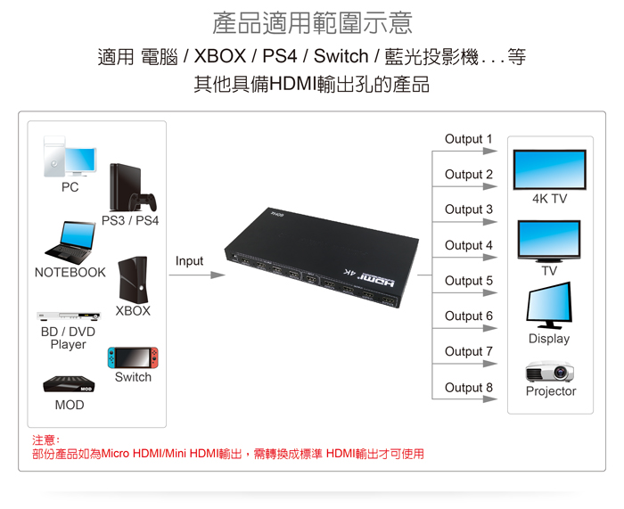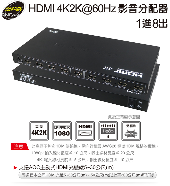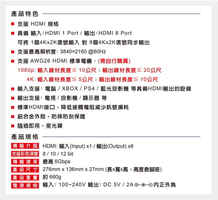 ● 支援4K輸入線材≦5公尺;輸出線材≦10公尺