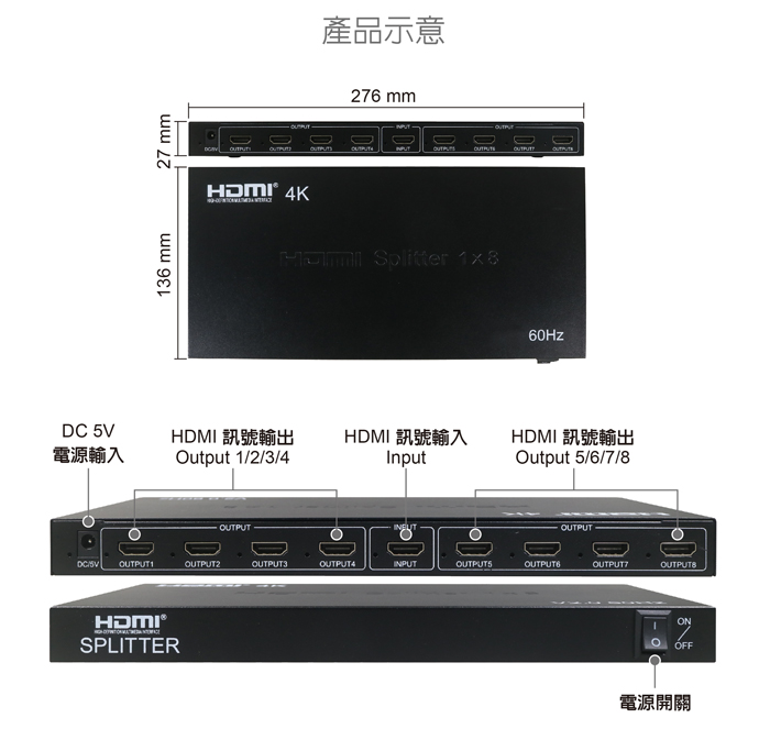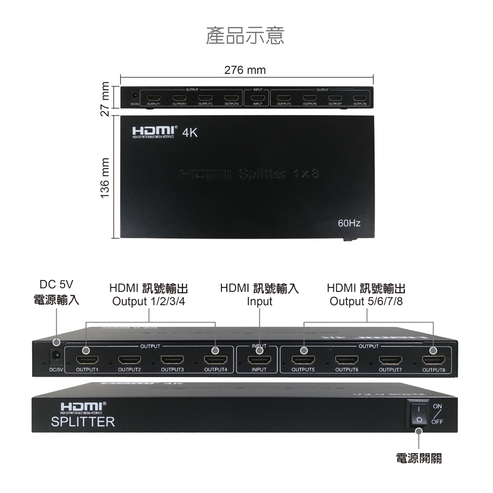 ● 具備HDMI輸入1埠 / HDMI輸出8埠