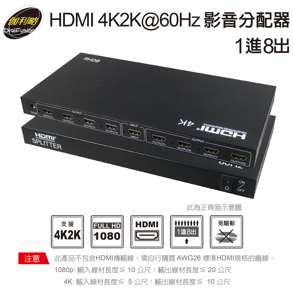伽利略 HDMI 4K2K @60Hz 影音分配器 1進8出