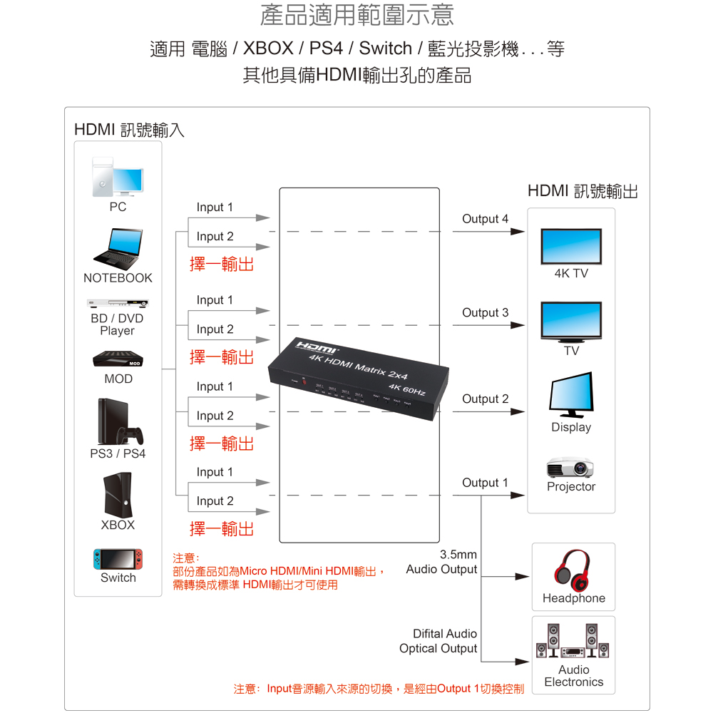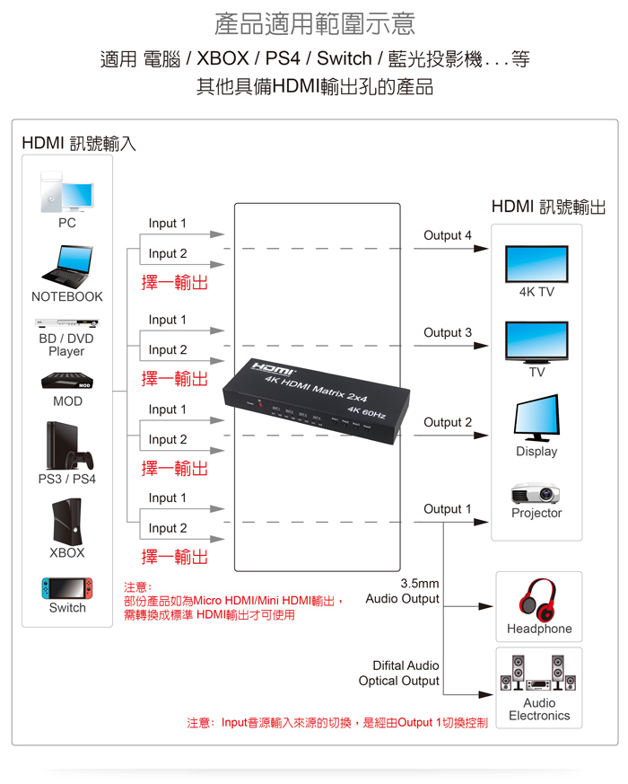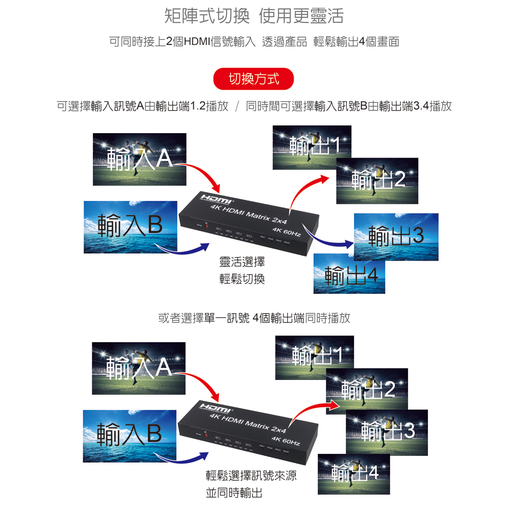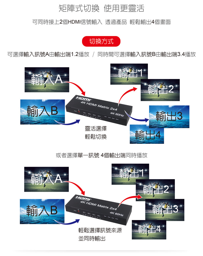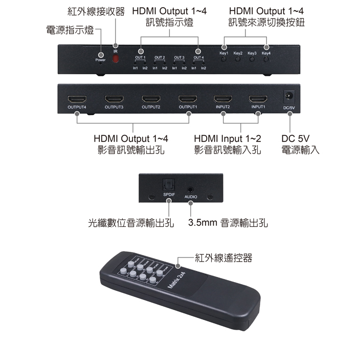 ● 具備HDMI輸入2埠/HDMI輸出4埠