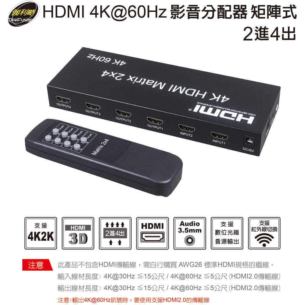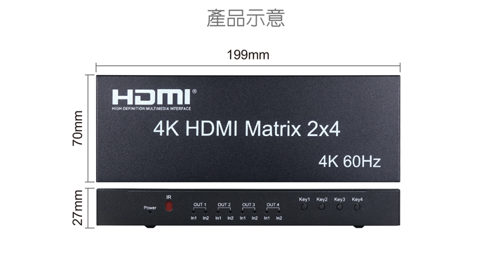 伽利略 HDMI 4K@60Hz 影音分配器 矩陣式 2進4出
