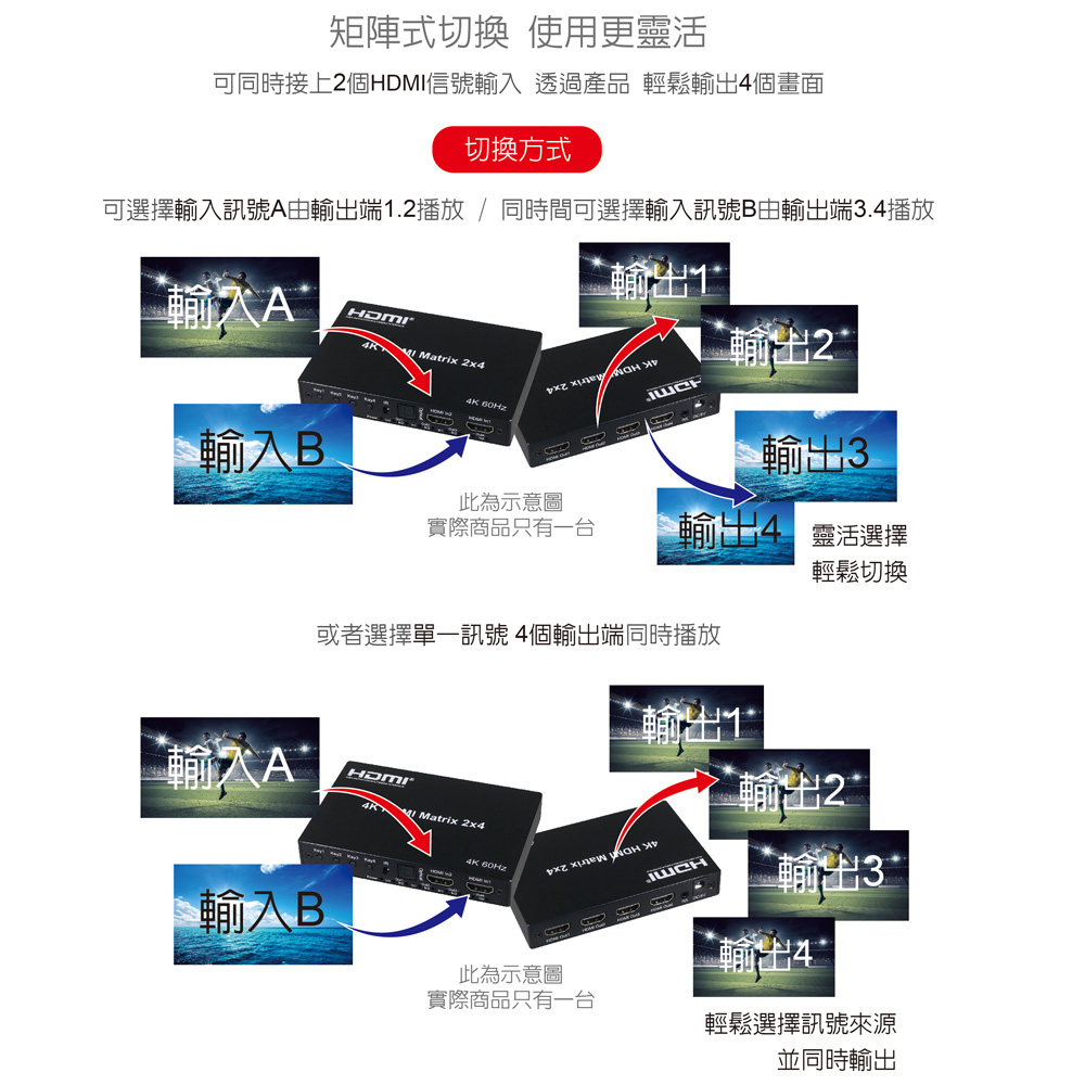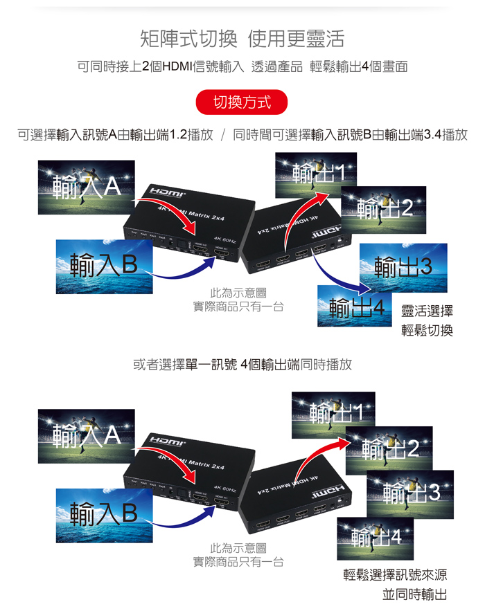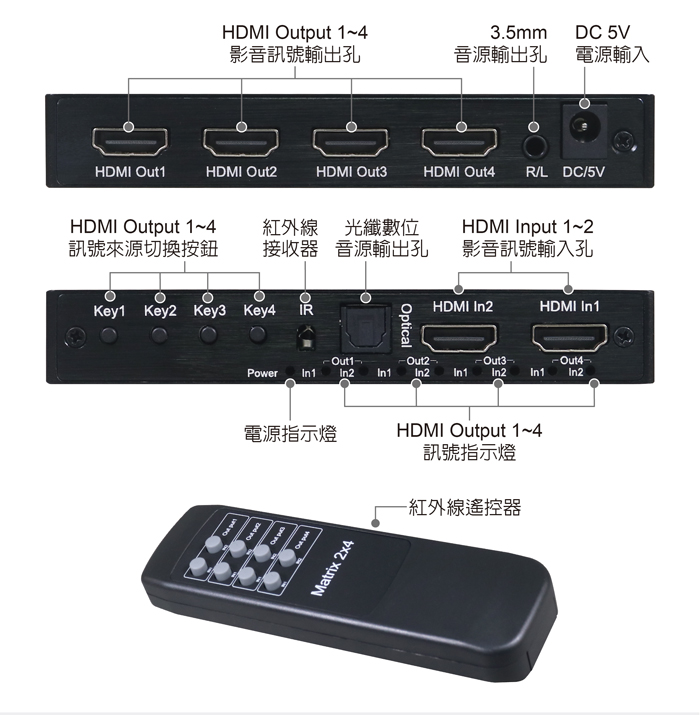 ● 具備HDMI輸入2埠/HDMI輸出4埠