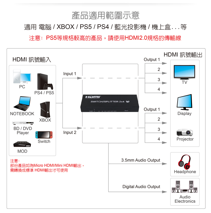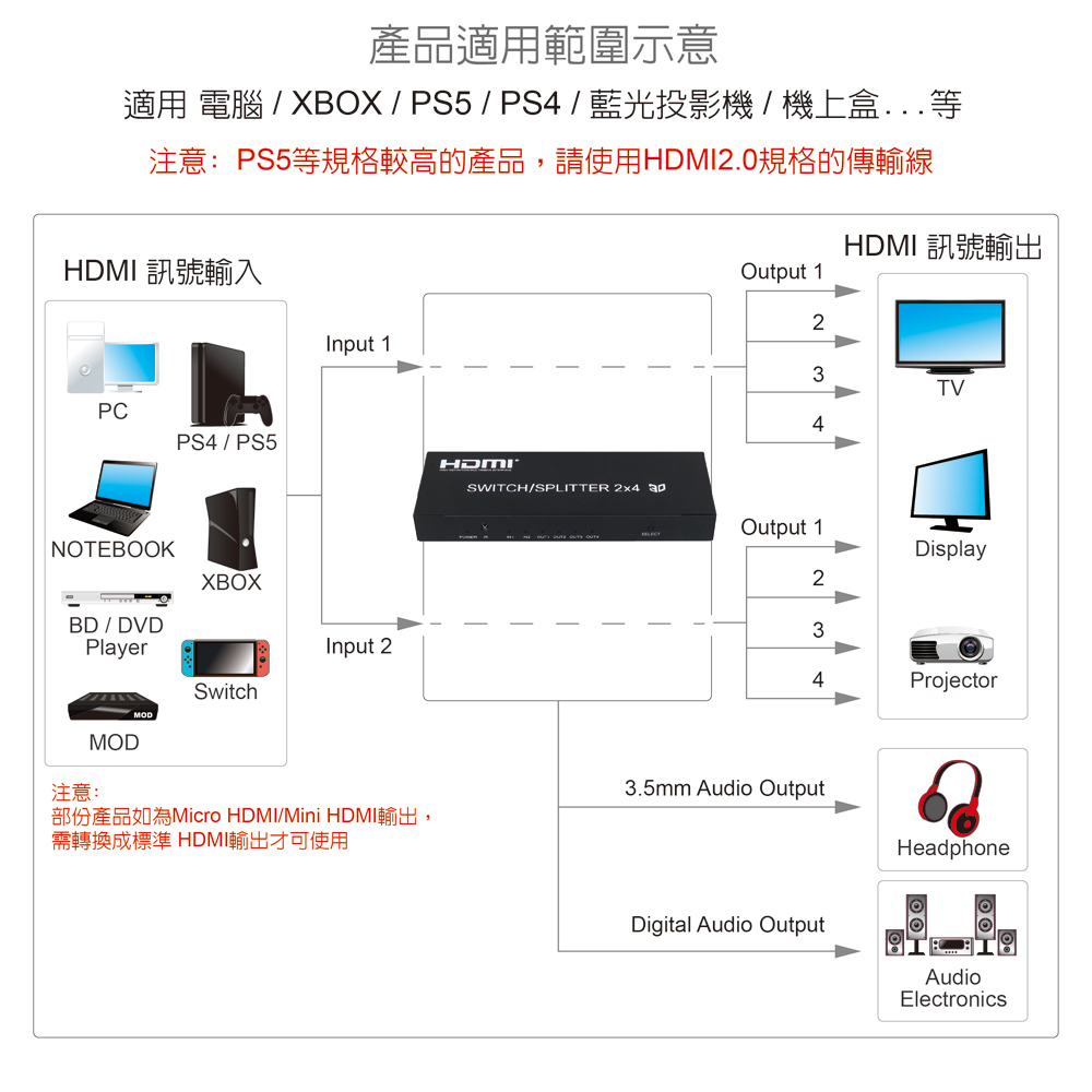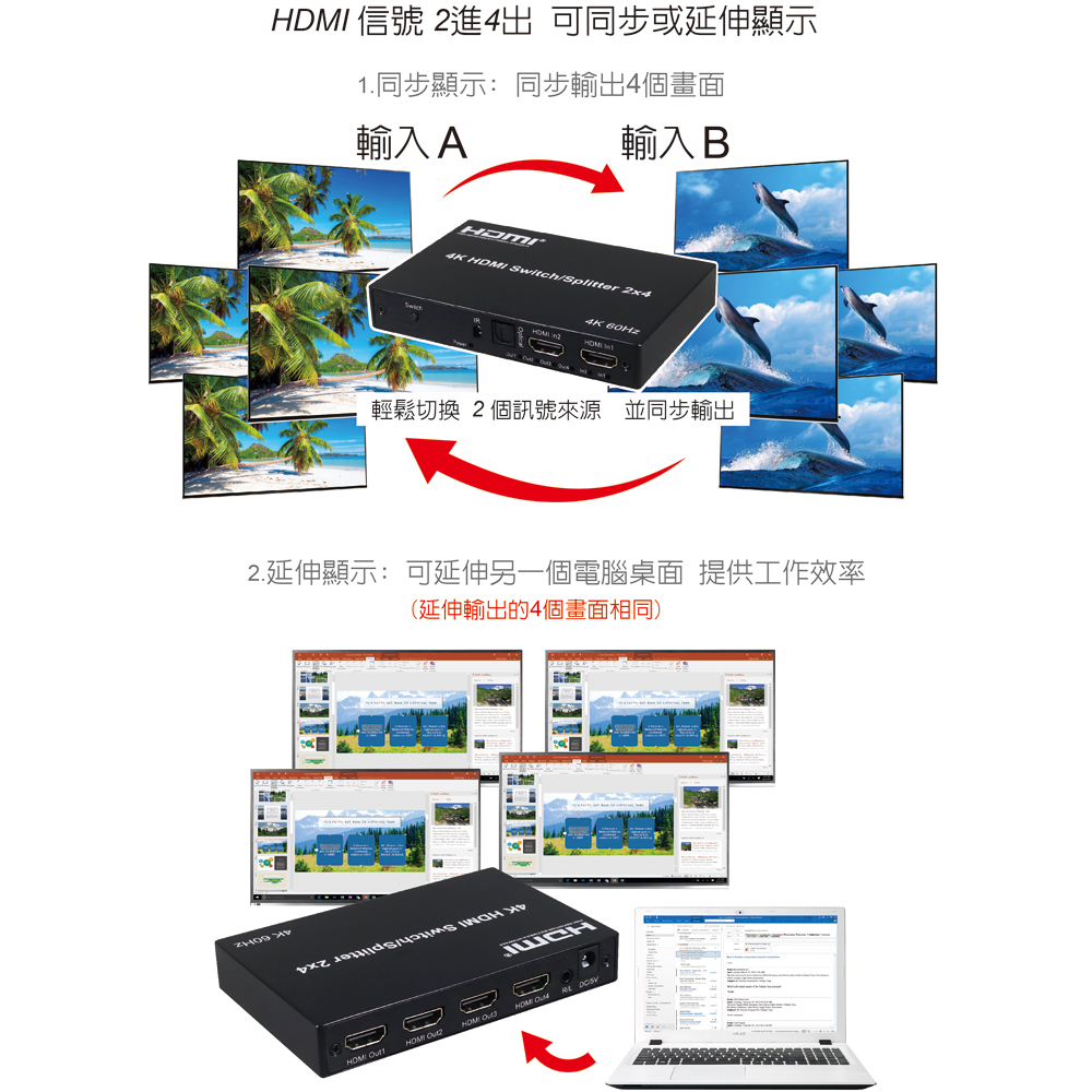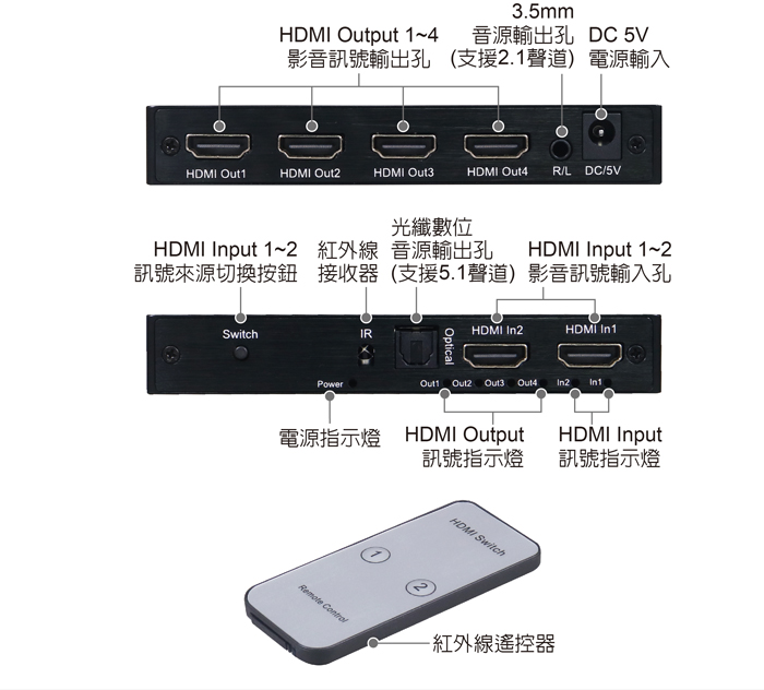 ● 具備HDMI輸入2埠/HDMI輸出4埠