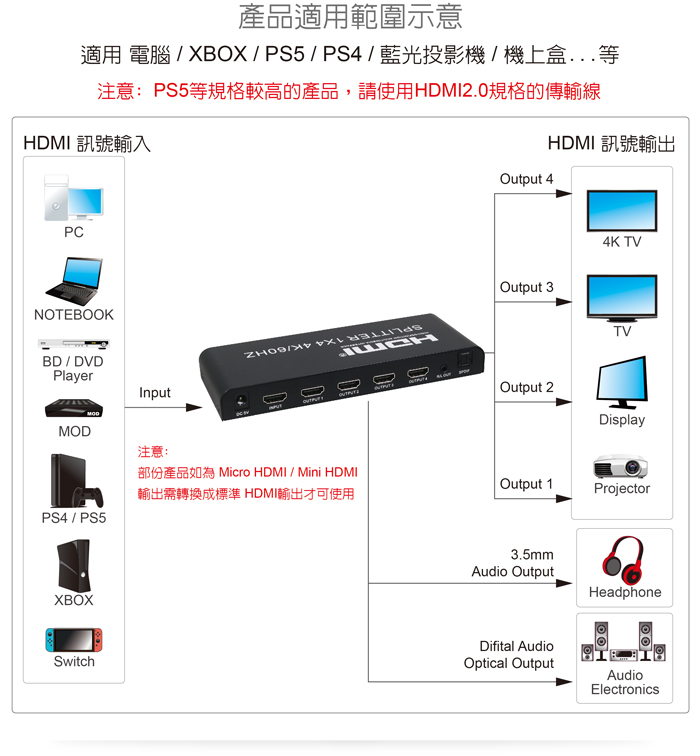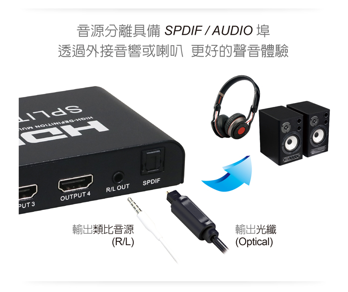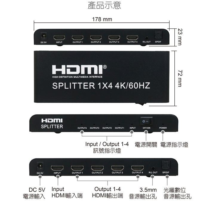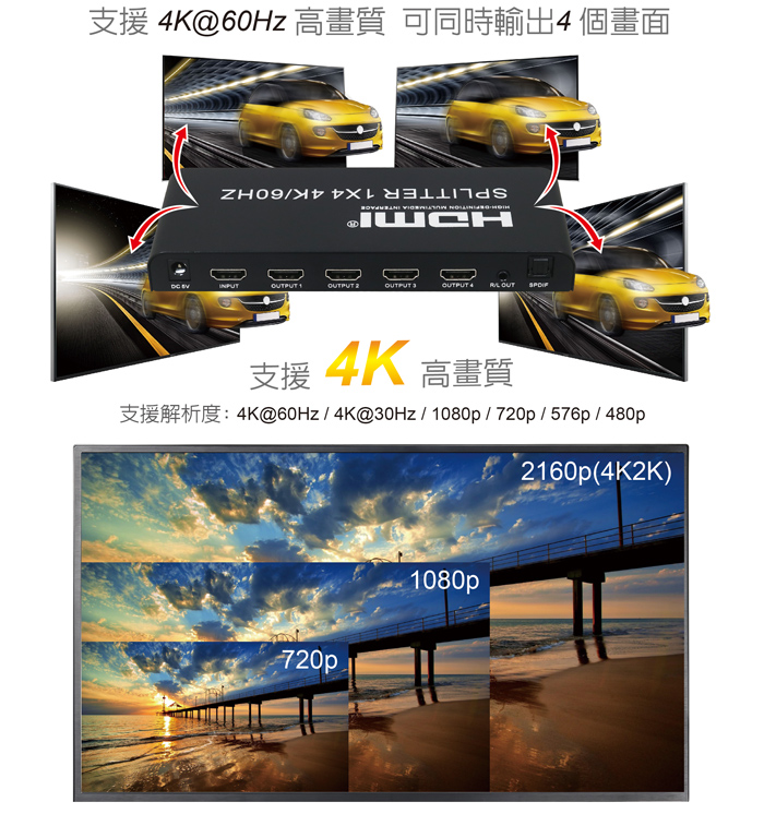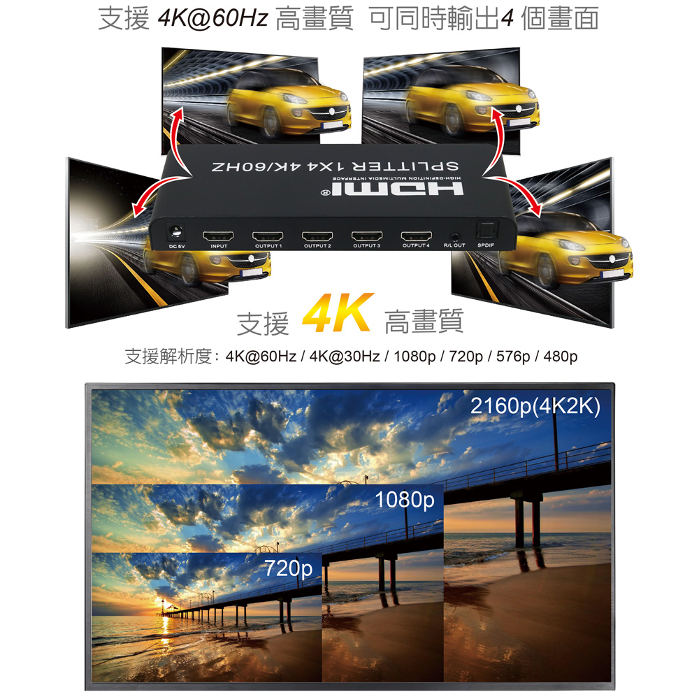 ● 具備HDMI輸入1埠/HDMI輸出4埠