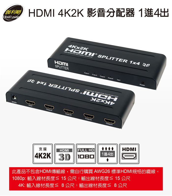伽利略 HDMI 4K2K影音分配器 1進4出