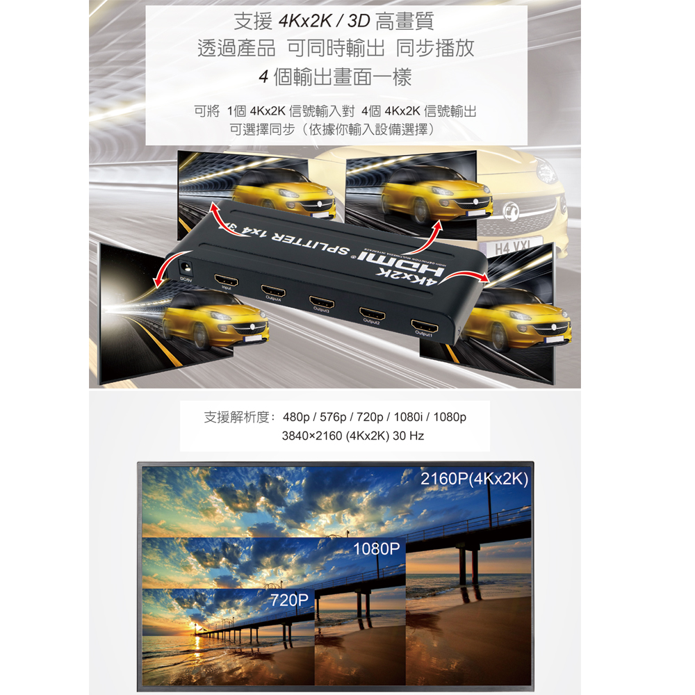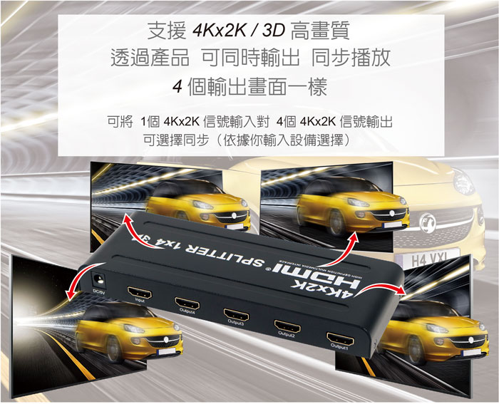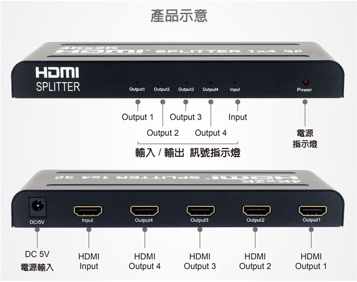 ● 具備HDMI輸入1埠/HDMI輸出4埠