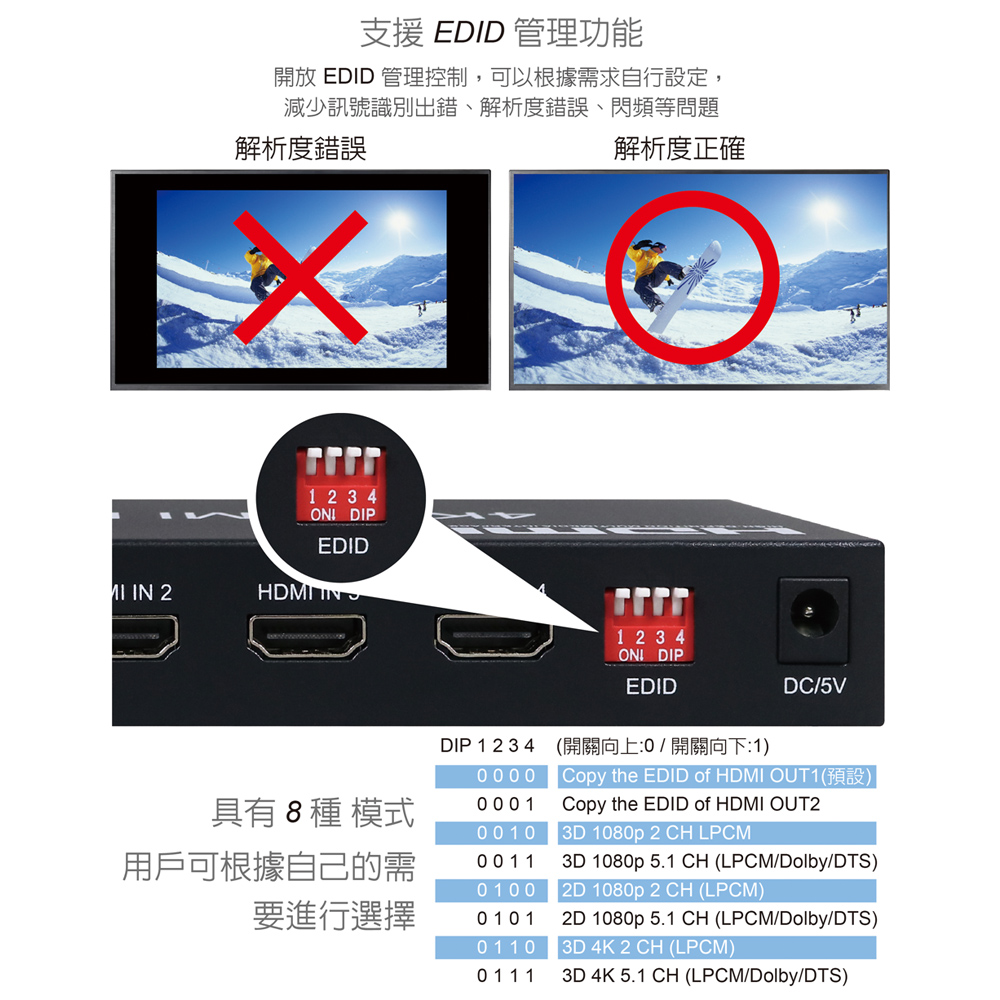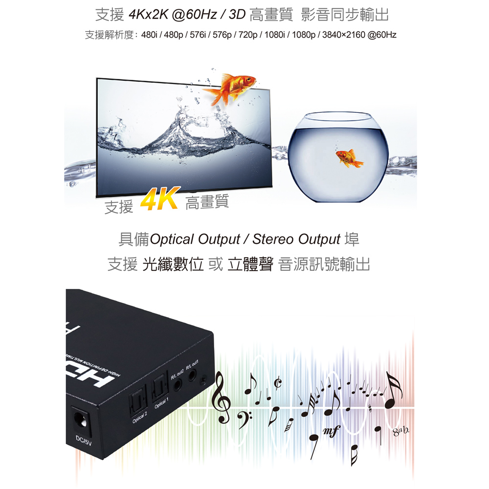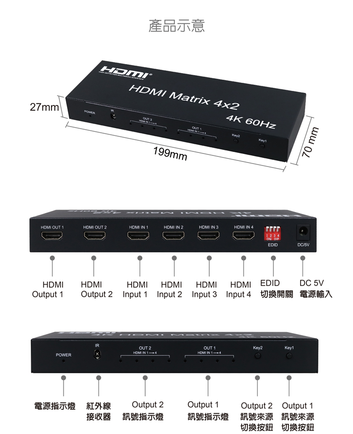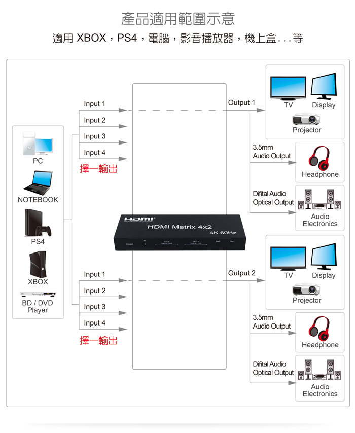 ● 支援4K輸入線材≦5公尺;輸出線材≦5公尺