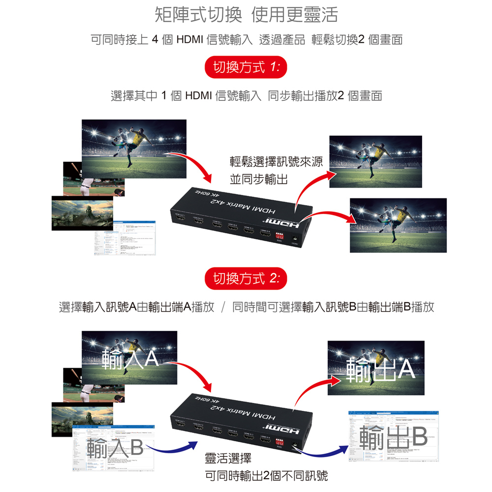 ● 具備HDMI輸入4埠/HDMI輸出2埠